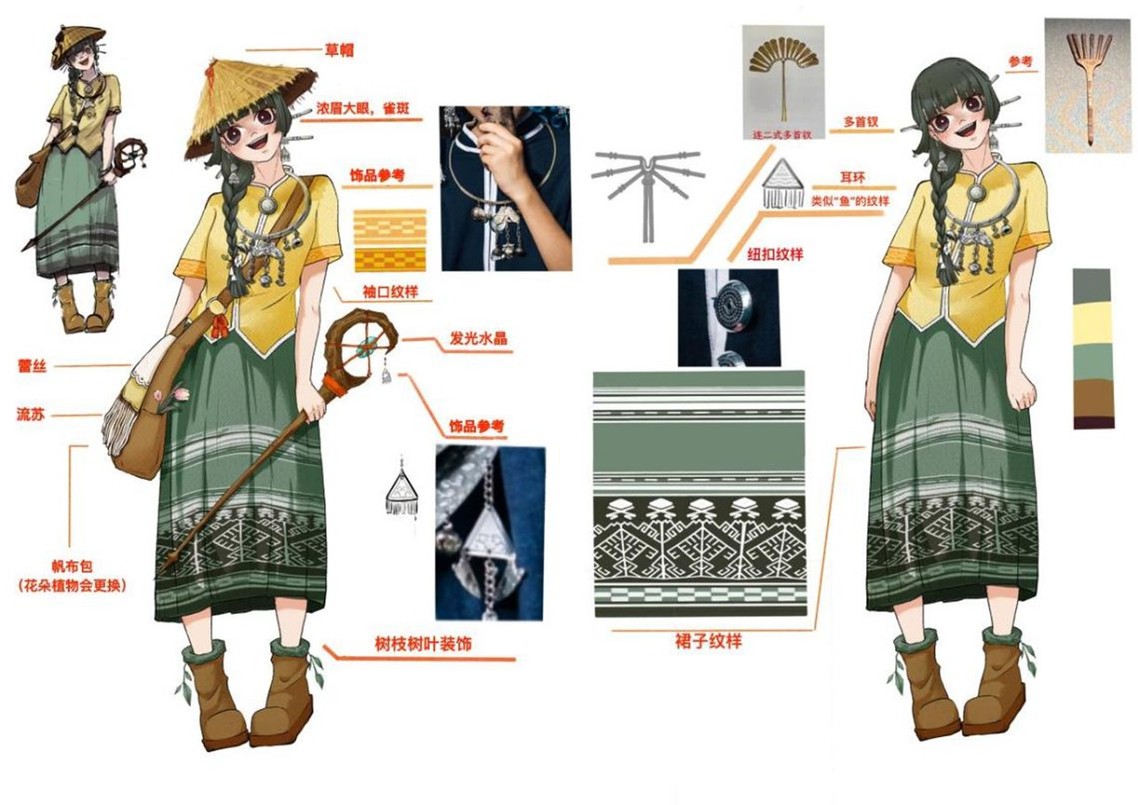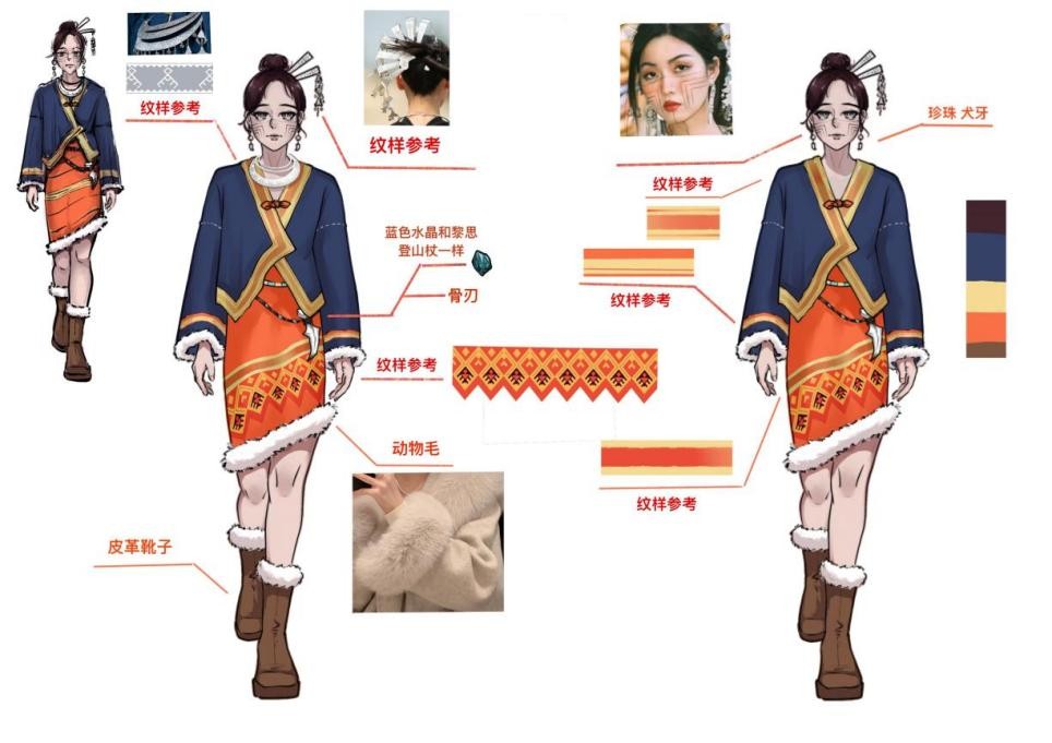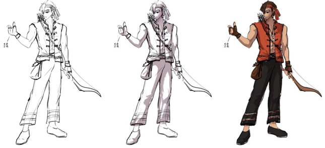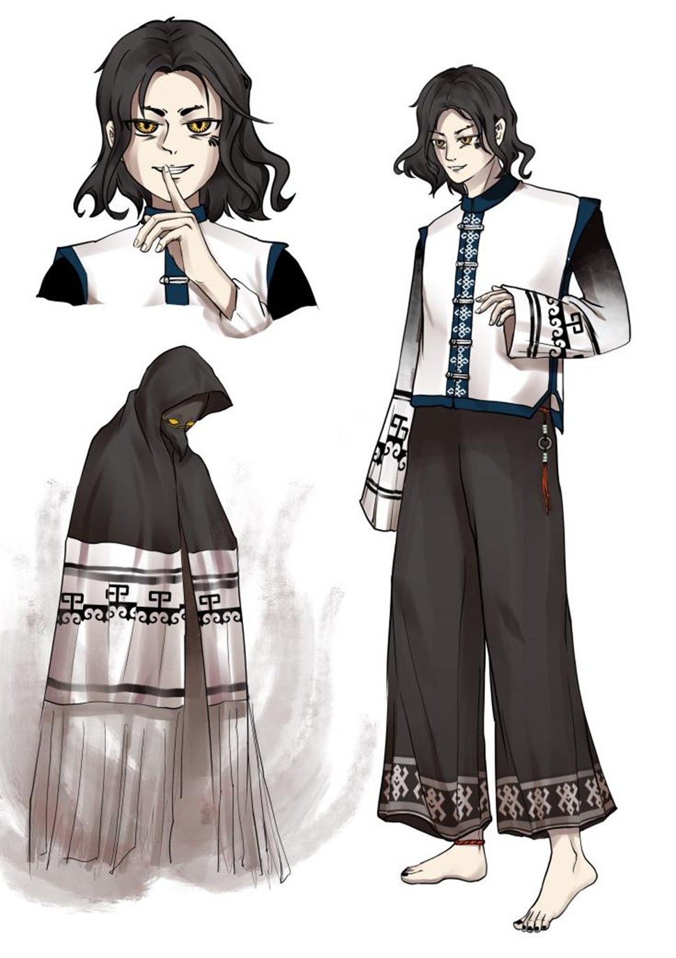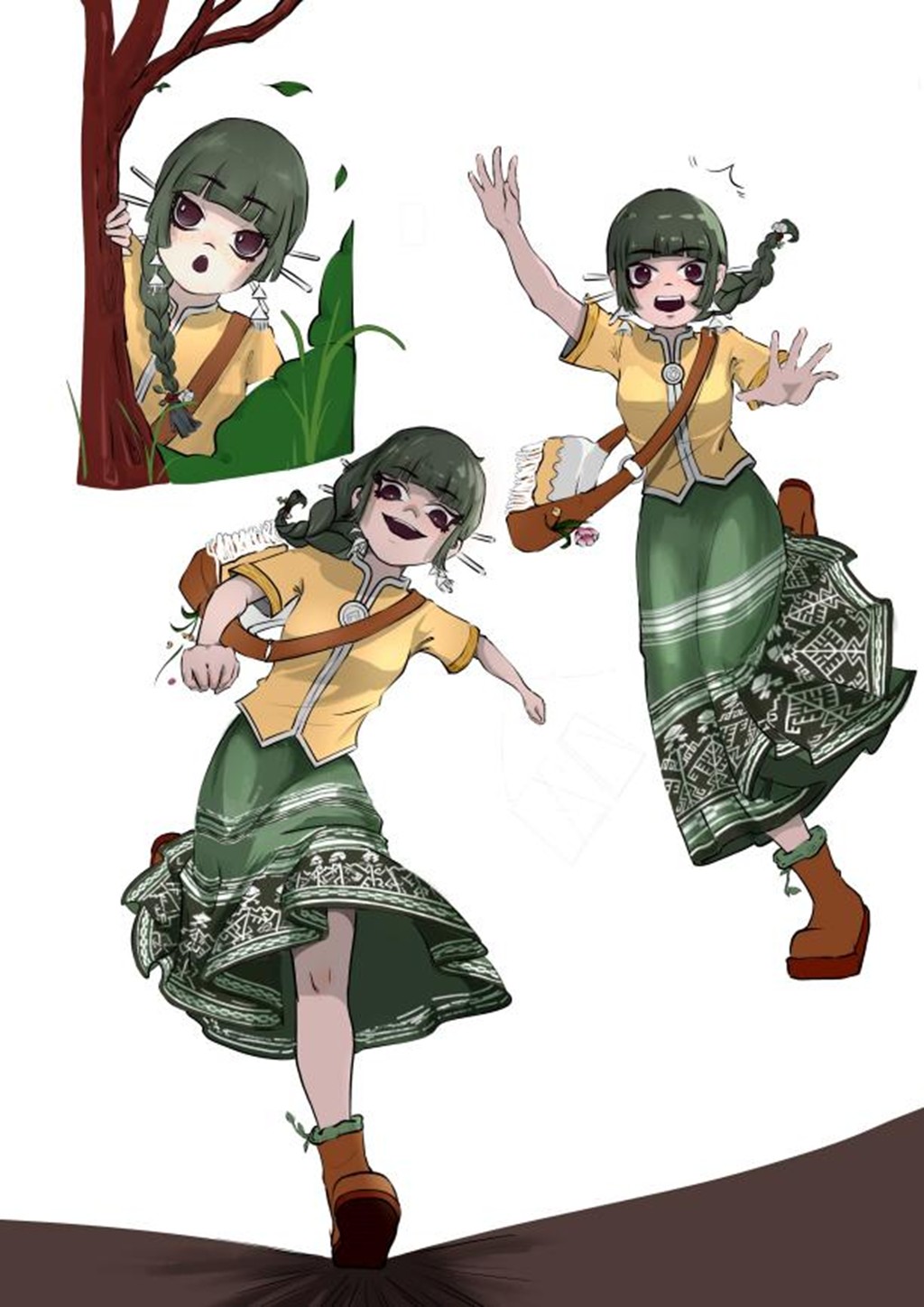 《“孚念孚”海南地域文化角色概念设计》是以海南黎族三月三为参考进行的原创角色概念设计。“孚念孚”其实就是黎族的语言中“三月三”的发音,三月三是黎族的一个重要的节日。根据“孚念孚”的故事背景与黎族文化设计了五位原创角色。学生通过对海南黎族文化的研究,设计创作出有黎族文化特色的原创角色设计。