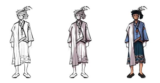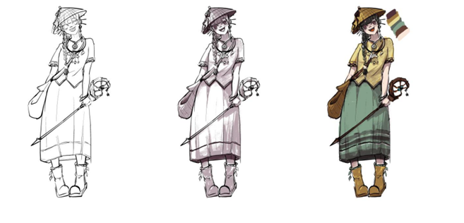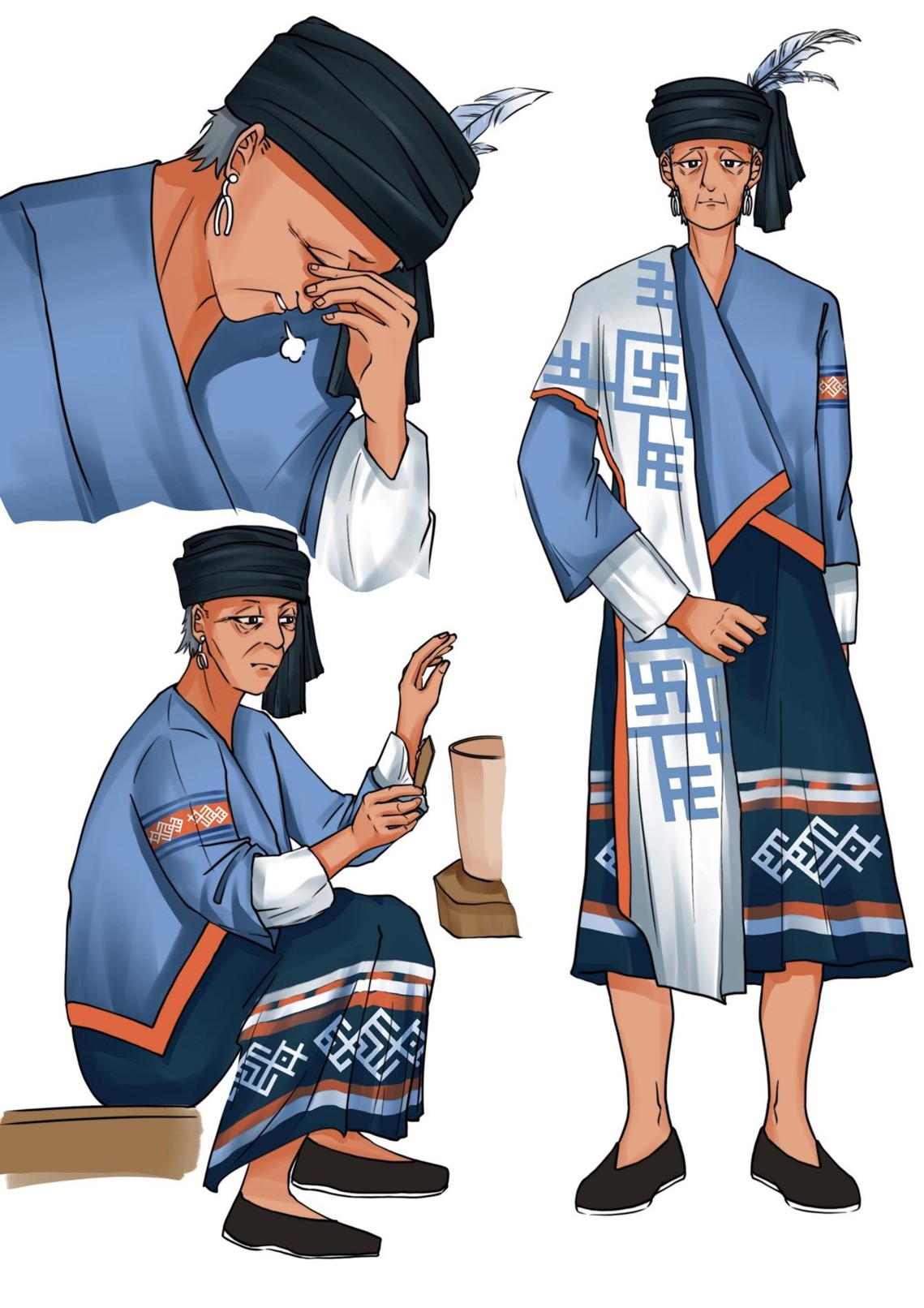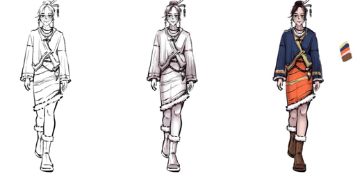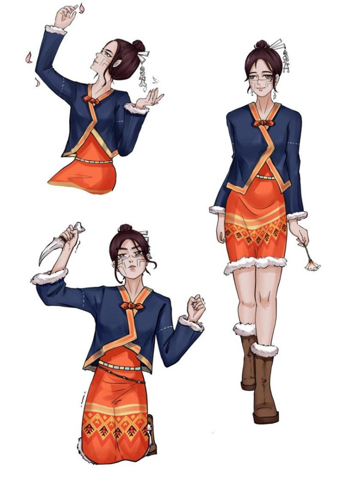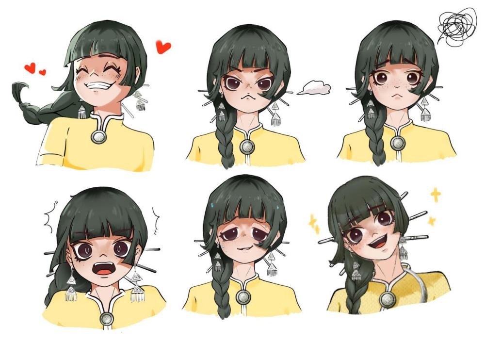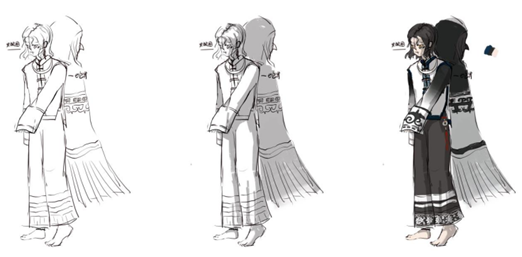 《“孚念孚”海南地域文化角色概念设计》是以海南黎族三月三为参考进行的原创角色概念设计。“孚念孚”其实就是黎族的语言中“三月三”的发音,三月三是黎族的一个重要的节日。根据“孚念孚”的故事背景与黎族文化设计了五位原创角色。学生通过对海南黎族文化的研究,设计创作出有黎族文化特色的原创角色设计。