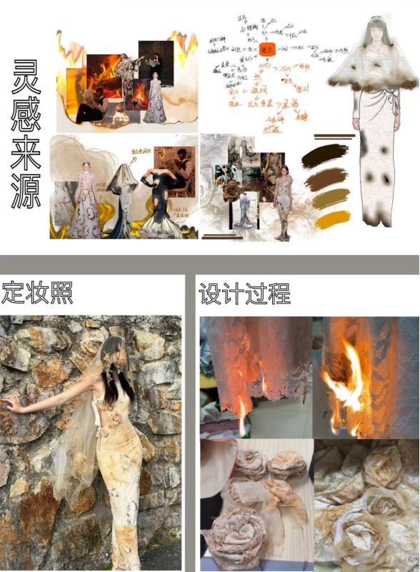 设计实践环节作为课程核心,充分结合数字化技术实现教学升级。结合行业最新流行趋势,完成从创意构思、设计到制作的全流程实践。课程设置了“主题礼服设计”“高级定制工艺模拟”等特色项目。项目结项成果展上,学生作品涵盖中式嫁衣、未来科技感礼服等多元风格,兼具艺术创意与商业价值,充分展现教学的显著成效。