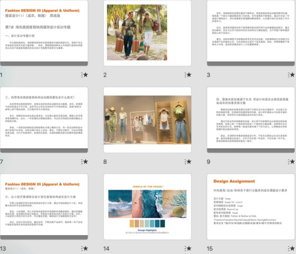 《服装设计III(成衣、制服)》数字化课程项目建设,培养学生正确的的职业发展素养、价值观和商业设计思维方式。聚焦海南国际旅游岛的发展,结合本土市场的需求,聚焦于时尚品牌成衣设计、度假休闲时装、旅游亲子服饰和企业以及酒店景区制服设计等内容
