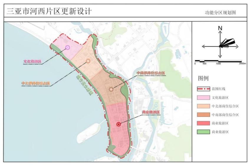 在空间布局上,从高密度转变为以人为核心适宜密度;在功能结构上,从以商业办公为主导转变为多样综合开发,并在海南自贸港三亚中央商务区的规划与建设中实行、研究、运用。该区域的功能划分包括:北部文化旅游综合功能区、中北部商业住宅综合功能区、中南部商业住宅综合功能区,以及南部商业旅游综合功能区。