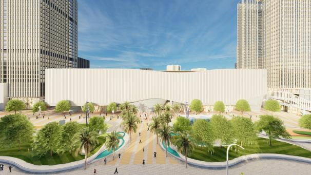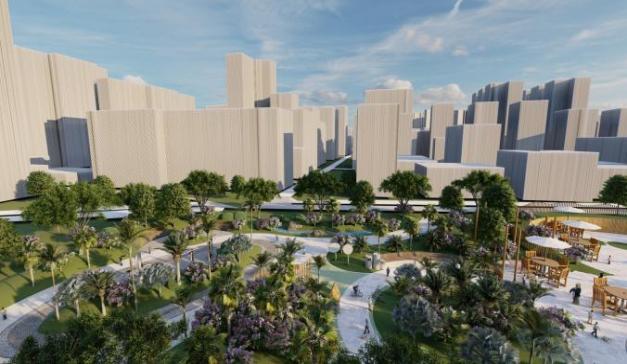 这是吴春园片区的渲染效果图,该片区现状建筑老旧,公共配套设施不完善,规划为集,现代商业高品质居住文化旅游于一体的城市新地标。