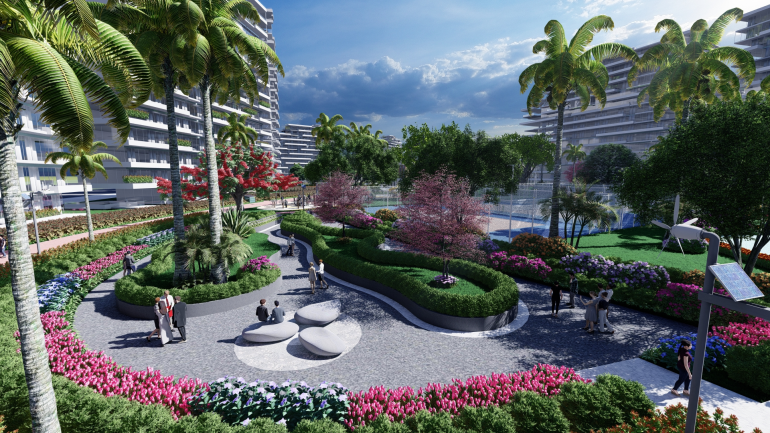 借助精心规划的景观轴线,巧妙地把原本被道路分隔的各个地块有机串联起来,打破了空间的割裂感,进而营造出一种“虽由人工雕琢,却宛如自然天成”的整体和谐氛围。这种设计方式不仅增强了空间的连贯性与整体性,还营造出自然与人工完美交融的美学意境,让整个区域在视觉和心理层面形成一个统一且协调的整体。