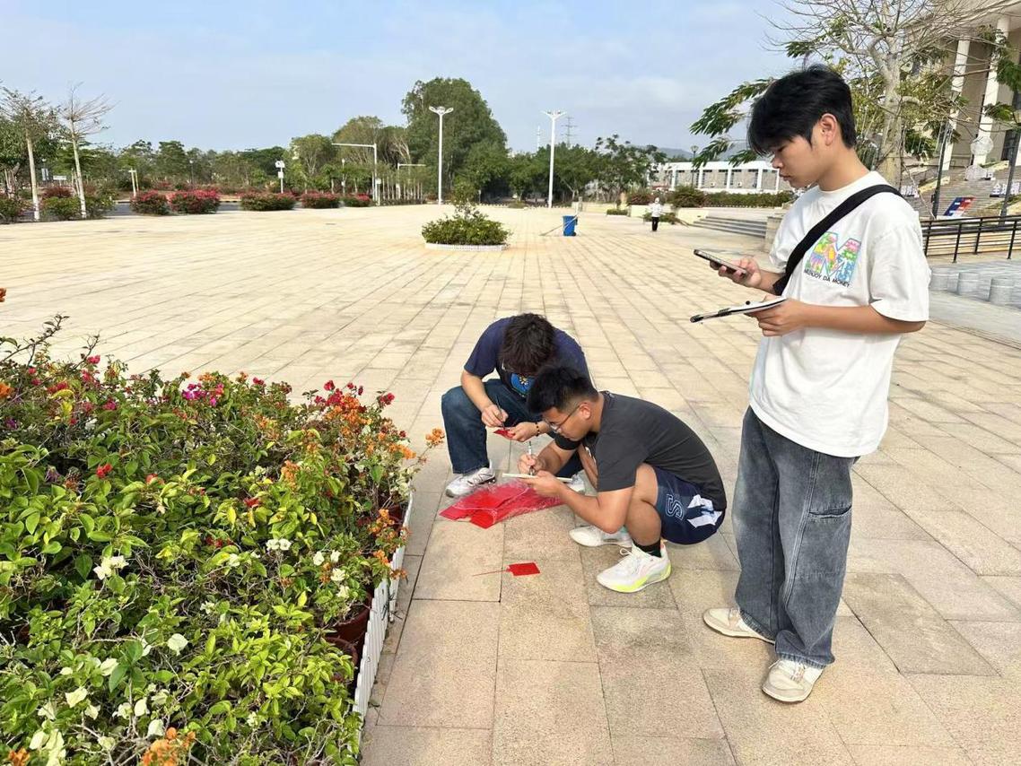 在三亚学院校园内,绚丽多姿的三角梅是一道亮丽的风景线。为了更好地了解三角梅的生长状态,提升校园植物景观品质,风景园林专业的师生团队组建了三角梅检测专项小组。在 12 次记录过程中,师生们运用课堂所学的植物生理、土壤分析、病虫害防治等专业知识,对校园内不同区域的三角梅进行全面检测。从叶片的叶绿素含量测定、土壤的酸碱度与肥力分析,到病虫害的识别与监测,每一个环节都严格按照专业标准执行,积累了大量详实的数据。