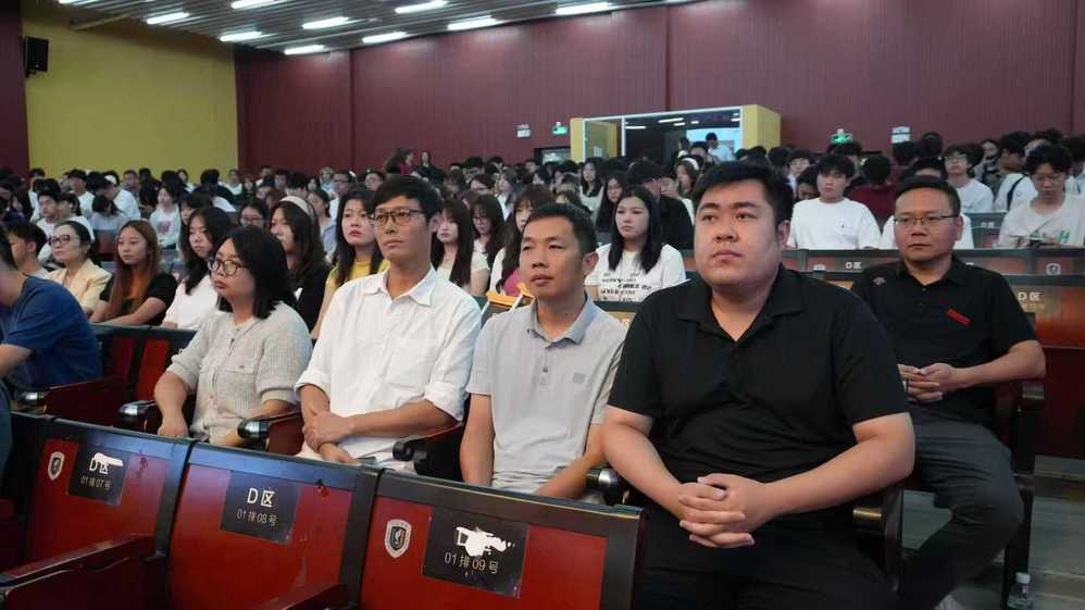 张鑫书记则聚焦产教融合的 “艺术学院特色”,以具体案例生动展现学院的实践成果。他提到,学院曾深度参与亚洲沙滩运动会视觉形象设计、2025 年博鳌亚洲论坛国宴微景观设计、吉利远程汽车房车内饰设计等重要项目,让新生直观感受到专业知识与社会需求的紧密结合。同时,深入浅出地剖析了 “艺术” 与 “设计” 的区别,指出设计不仅需要扎实的审美能力与造型功底,更离不开严谨的逻辑推理能力,强调 “理性与感性交织” 是设计创作的关键,让新生对专业学习有了更深刻的认知。