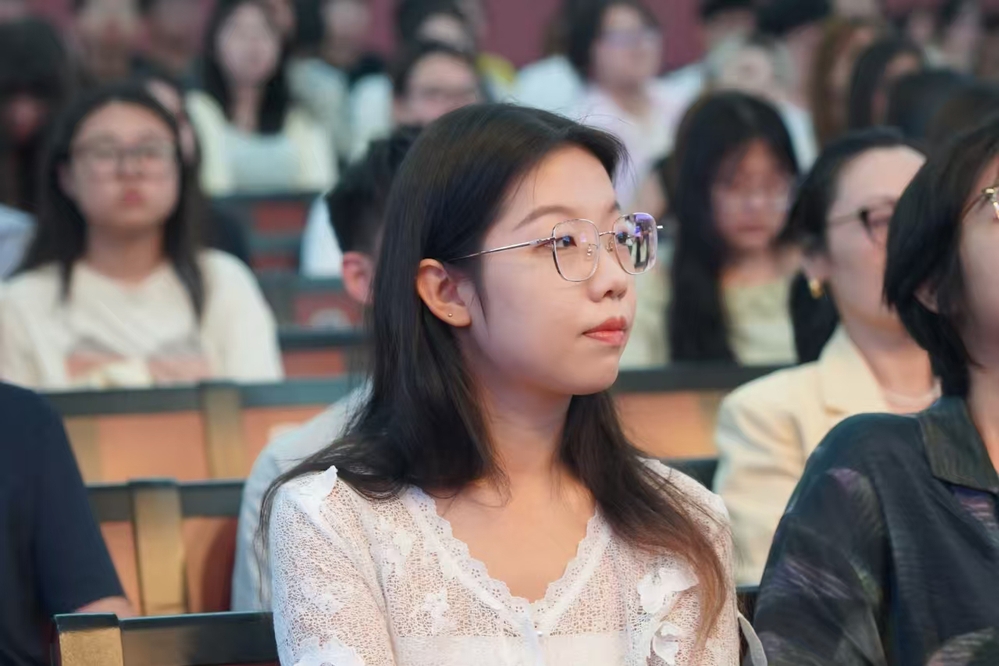 随后,陈琳院长围绕学院发展核心展开介绍,她全面阐述了学院的教育理念、教学及科研活动的多样化,特别是与意大利库内奥美术学院的中外合作项目。并重点提及与意大利库内奥美术学院的中外合作项目,为新生勾勒出国际化的学习视野。陈琳院长强调,学院始终将培养学生的独立思考能力与跨学科素养置于核心位置,当前正积极推进 AIGC 技术应用与 AI 赋能教学改革,通过实践活动、项目化学习等方式强化学生实践能力;同时,学院已启动全方位 AI 转型,覆盖学科基础课与专业核心课,助力学生适配新时代艺术设计领域的发展需求。此外,她还分享了学院在科研创新、社会服务领域的成果,介绍了特色文化活动与优秀学生作品,着重指出校企合作与产教融合对提升学生就业竞争力的重要意义,鼓励新生积极参与各类赛事与实践,在实践中锤炼专业能力。