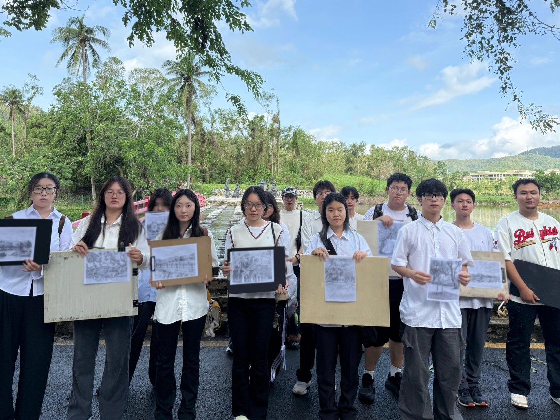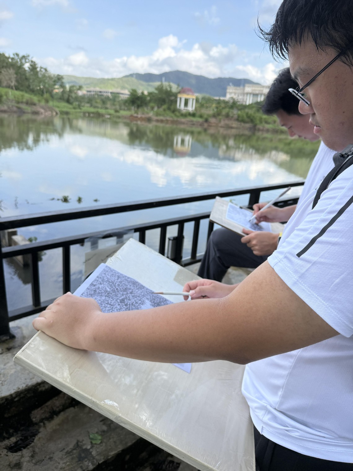 清晨的白鹭溪,薄雾缠绕着芦苇;正午的阳光在水面洒下碎金;傍晚的余晖为草木镀上暖橙——不同时刻的光影流转,让这里成为天然的写生课堂。同学们或蹲坐溪边长椅,或驻足石板桥边,用铅笔勾勒垂柳的曲线,用颜料调和溪水的湛蓝,试图将眼前的灵动与诗意,定格在传统的画纸之上。