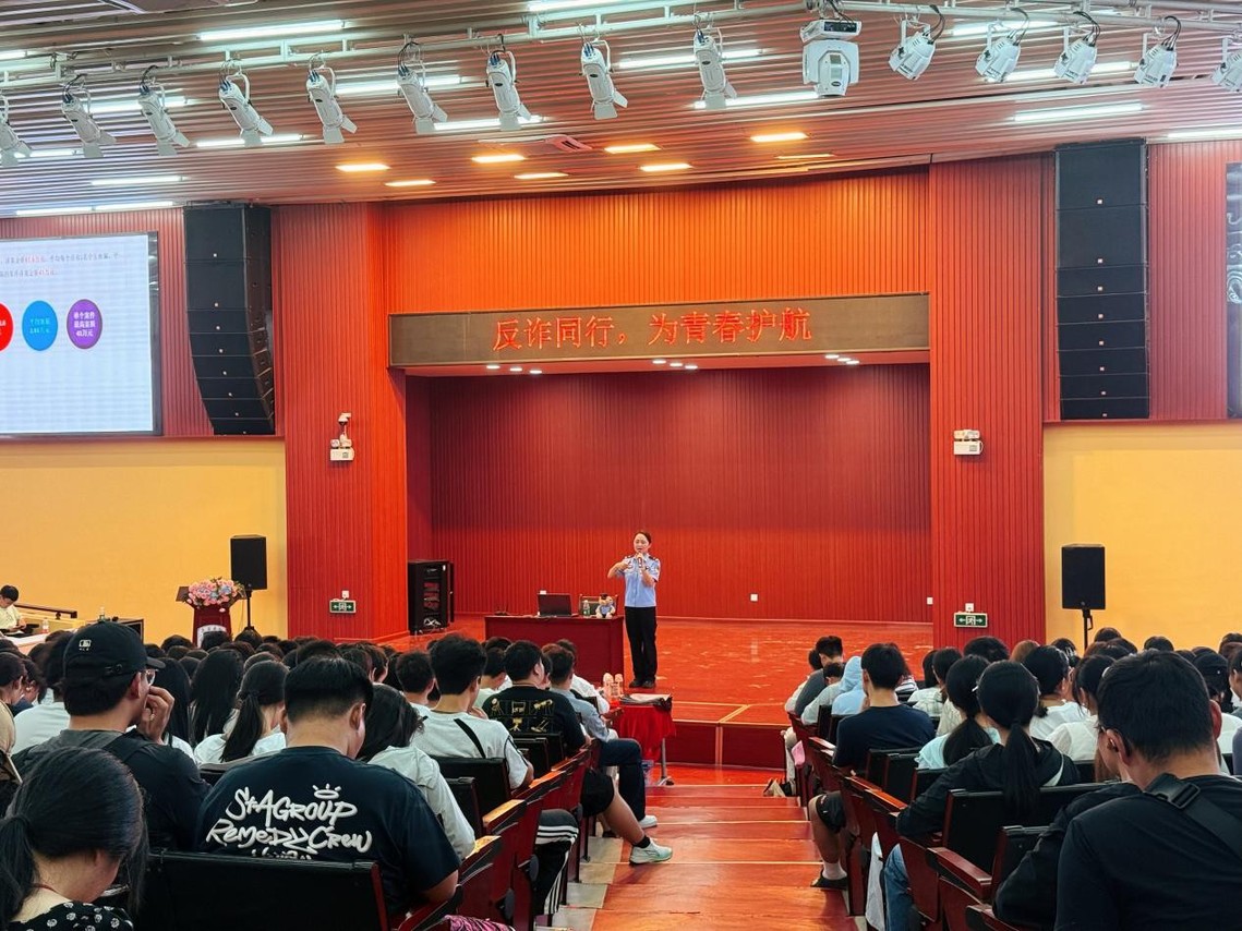 为有效提升学生防范电信网络诈骗的意识和能力,2025年10月15日下午,学校书会堂举办“反诈同行,为青春护航”专题反诈讲座,邀请当地警方反诈专家现场授课,我院杨硕老师带队,组织80余名同学到场聆听学习。