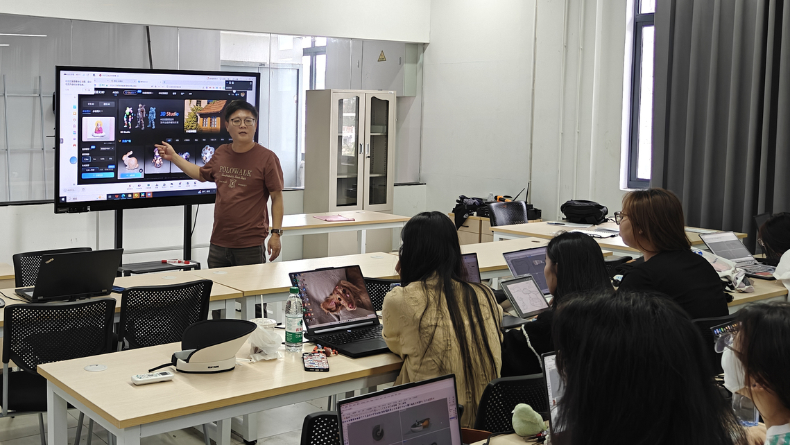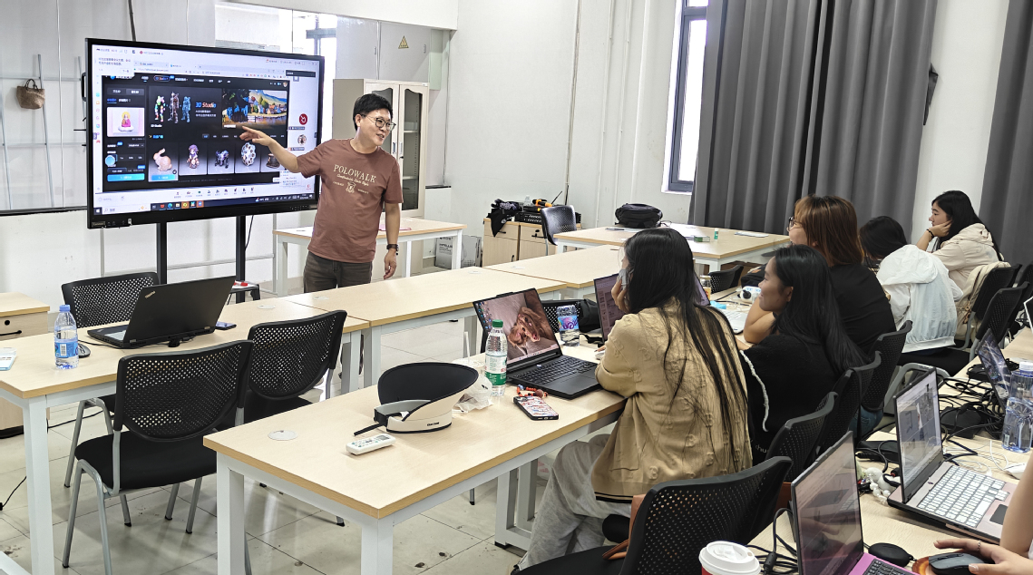 为助力产品设计专业学生拥抱技术变革,培养复合型设计能力,“AI三维生成与传统CAD协同应用”为主题的专题讲座于11月3日在设计教室412举办。本次讲座由徐明亮副教授担任主讲,系统讲解传统CAD与AI三维生成的协同工作方法,帮助学生构建面向未来的设计思维与技能体系。讲座内容涵盖四大核心模块:首先深入解析传统CAD在精确建模和产品设计中的核心优势及操作技巧;其次揭秘AI三维生成工具的技术原理与创新应用场景;进而探讨如何构建“AI创意激发+CAD精确实现”的协同工作流程;最后通过真实案例展示,完整呈现从AI快速生成方案到CAD参数化优化与细节完善的全过程。