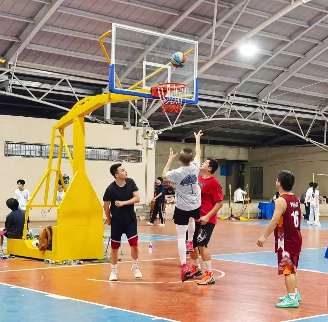 风雨球场内气氛热烈。随着裁判一声哨响,比赛正式拉开帷幕。教职工们迅速进入状态,传球、突破、投篮,动作流畅,配合默契。赛场上,平日严谨治学的教师们化身为矫健的运动员,积极拼抢、巧妙助攻,不时引来现场观众的阵阵掌声与喝彩。比赛过程中,双方队员既展现了竞技体育的拼搏精神,又秉承“友谊第一”的宗旨,以球会友,相互鼓励,充分体现了学院和谐团结的文化氛围。