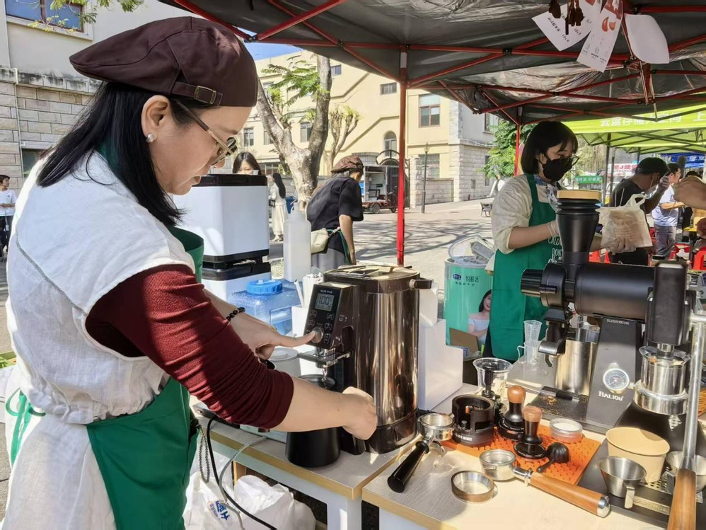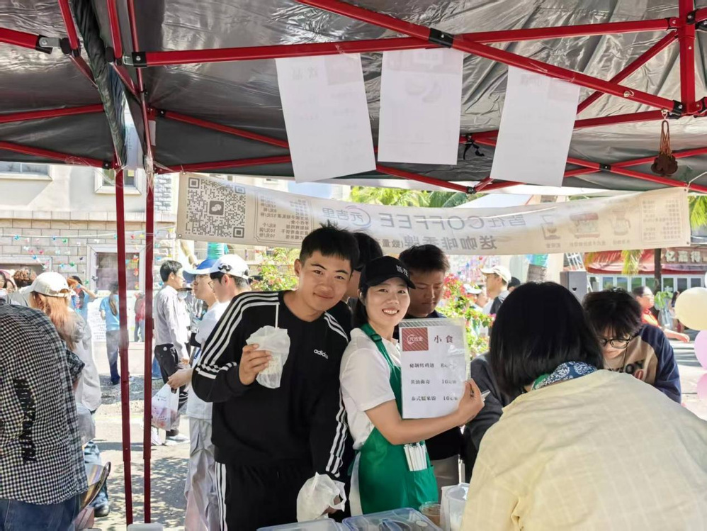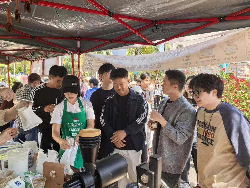 艺术设计学院的学子们化身专业的咖啡师,娴熟地研磨、萃取、拉花,一杯杯颜值与口感并存的饮品应运而生,为沉浸在美食狂欢中的师生们,提供了一处可以小憩品茗、畅谈艺趣的雅致角落。