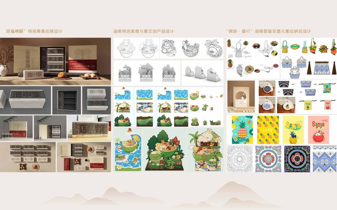 视传专业一直积极倡导和深化产教融合教学模式、深耕区域社会项目研发,构建“学校+项目”的项目制产教协同育人模式。团队先后承接设计了第六届亚洲沙滩运动会、海南省第七届少数民族传统运动会主视觉系统设计、第十二届全国少数民族传统体育运动会志愿服务徽标设计、三亚市城市出租车“多巴胺”风格外观新款设计和三亚官方用水“天涯故事”矿泉水包装设计等重要设计项目,得到省市主要领导的高度认可和肯定;团队联袂打造了2025博鳌亚洲论坛国宴微景观设计、2025三亚湾沙滩艺术共创活动、2025南山非遗季文创设计作品展、连续三年崖州古城祭孔大典和全域校园道路导向指示系统提升建设等有较强影响力的实操项目。专业骨干教学团队经过9年的刻苦攻关,出版发行了国家出版基金图书项目全套8卷的《中国汉字美学史》,研究历代装饰文字的发展历程,填补了相关领域的国内空白。一系列重要项目成果取得了热烈的社会反响,彰显了卓有成效的视传设计学科培养体系的构建,极大程度深化了项目制教学的前沿模式,为新型应用人才培养树立了典范。