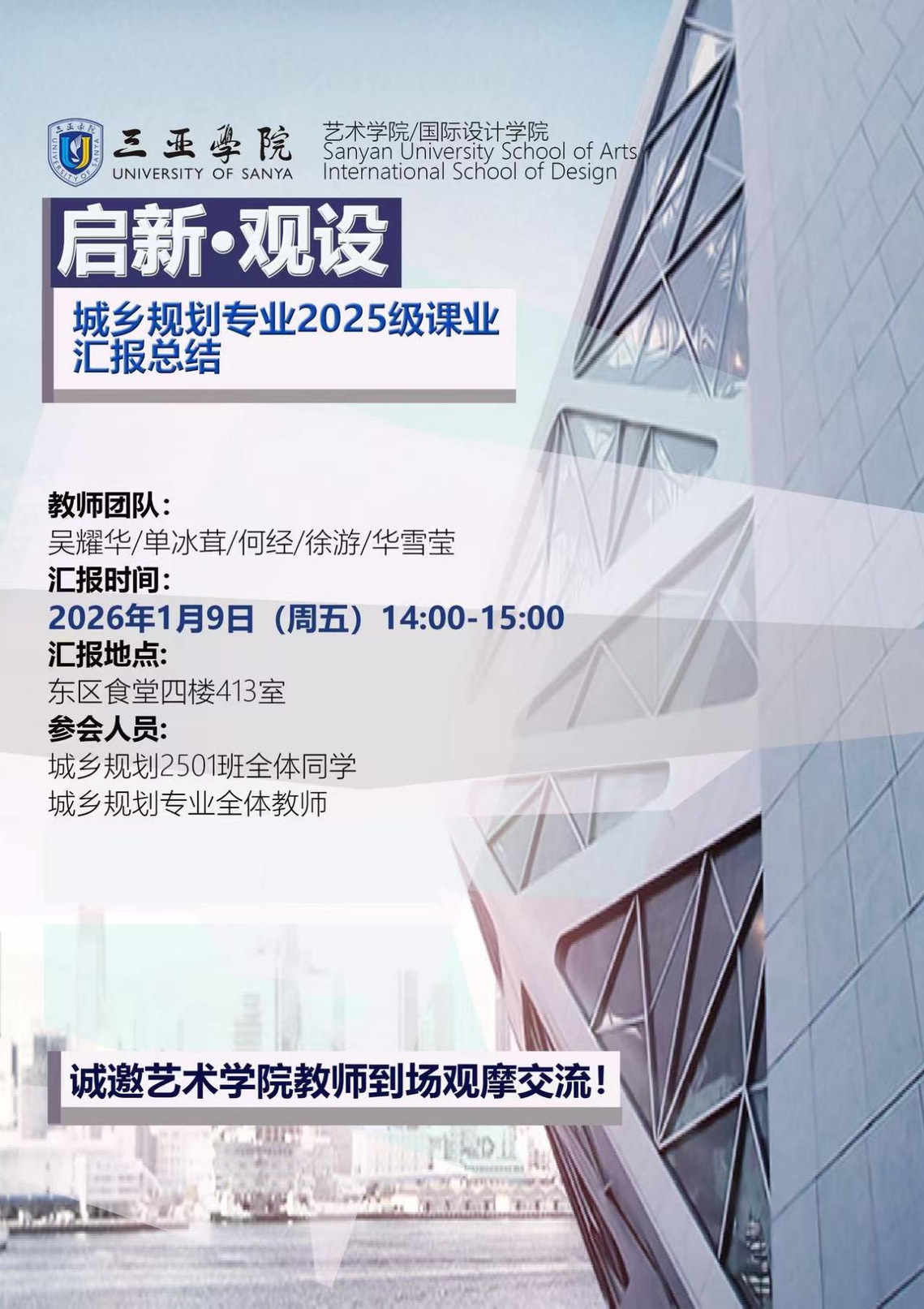 锚定教改方向,实践赋能入门。1月9日,三亚学院城乡规划专业2025级新生的首场专业汇报——“启新·观设”S/T模块课业总结会在东区实验室温暖落幕。在学校“让学生更好地走向社会”的办学使命指引下,这场以建筑制图、测绘成果为核心的汇报,深度契合国际设计学院“重实践、强应用、促融合”的教改理念,不仅是新生从“专业萌新”到“初涉实践”的成长见证,更具象化了专业落实“基础实践模块化、实践教学场景化”的教改举措,让每一份青涩的作品都成为应用型人才培养路上的坚实脚印。