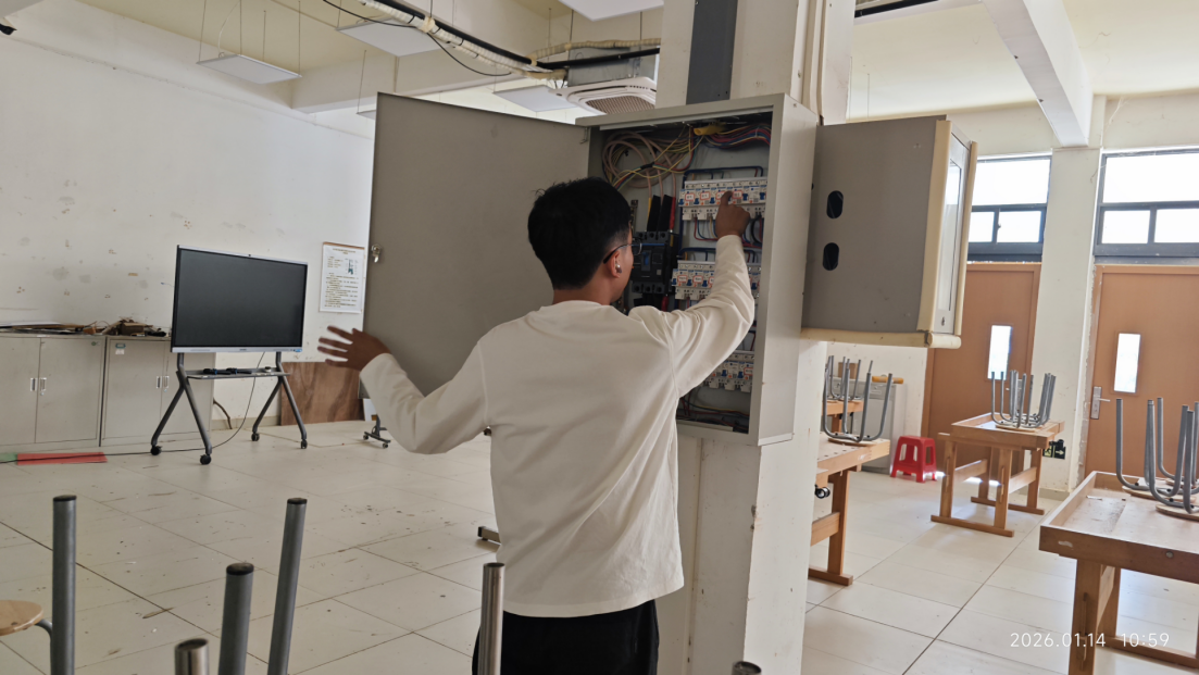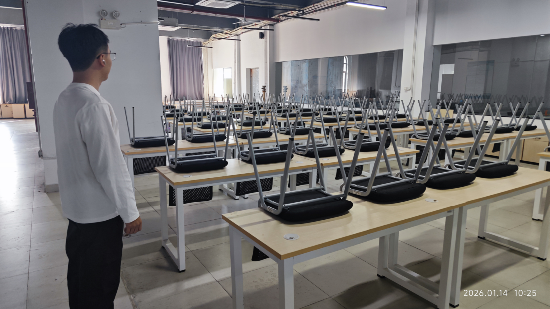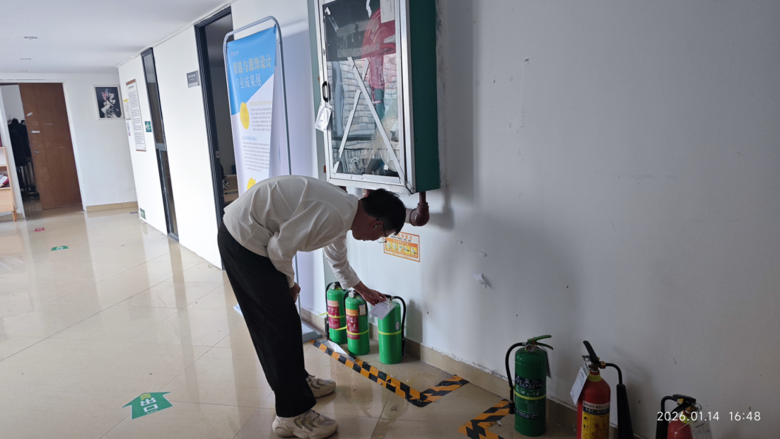为防范实验室安全风险,保障假期资产安全与环境稳定,2026年1月 14日,艺术学院开展全院实验室期末安全专项检查。检查由实验室负责人孙晋博副院长带队,资产管理员宋晓晖、钟步飞老师、实验员陈奕富组成小组,实现全院实验室全覆盖排查。
