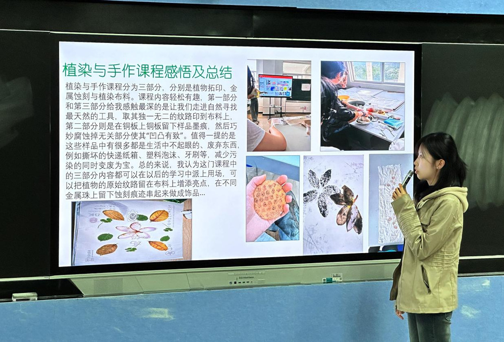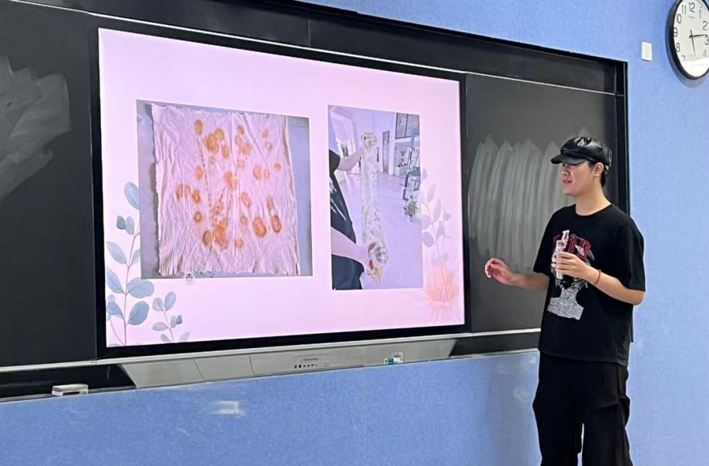 图4 符轩凯同学做分享《植染与手作》课程心得