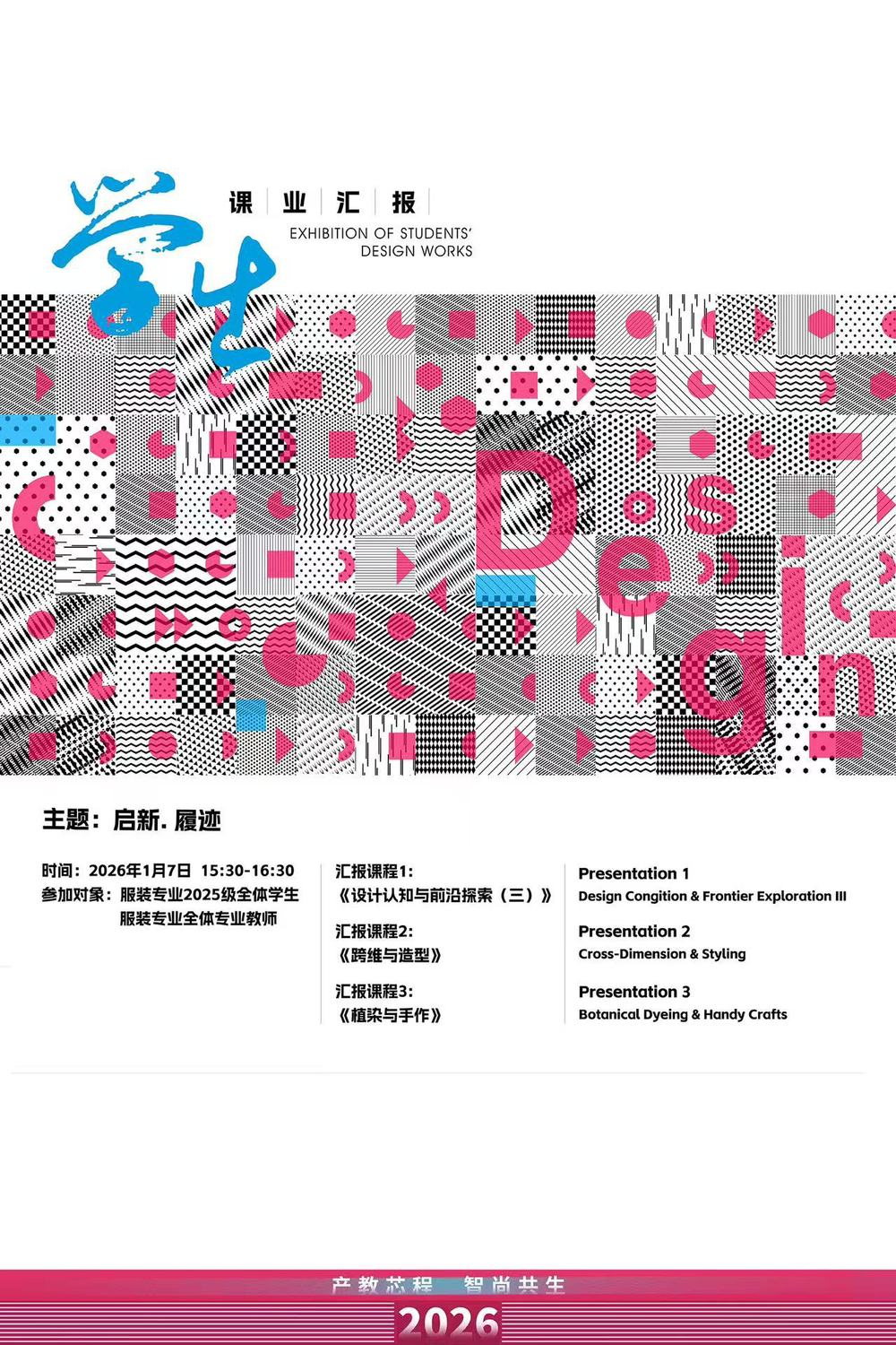 本次结课课程汇报通过课程学习、学生反思与校友分享的多维呈现,清晰展现了学生从设计认知到实践能力的成长过程。在不断尝试与调整中,学生逐步建立起行动意识、审美判断与专业自觉。课程将课堂学习与行业经验、社会现实相连接,为服装与服饰设计专业的人才培养与持续发展注入了积极动力。