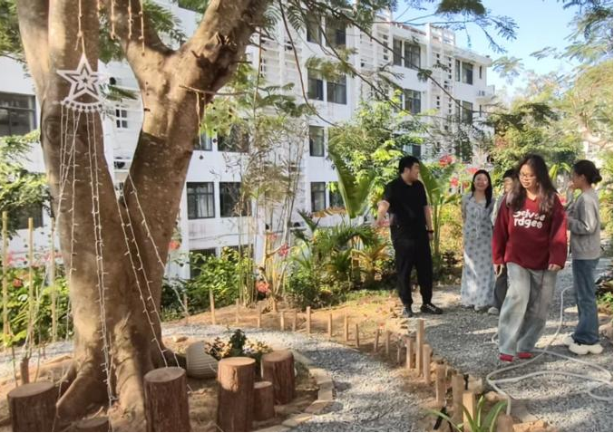2026114日,三亚学院风景园林专业课业汇报成果展交流观摩会在校园后山圆满举行。本次活动以“智尚·自然”为主题,特别邀请艺术学院教师团队到场观摩交流,共同见证风景园林学子在植物栽培与风景区规划设计的创新探索,实现从“纸上的植物配置图”变成“可触摸的校园小景”,用一场“理论落地+空间焕新”的实践,完成了从课堂到现场的闭环开启了一场自然与艺术交融的学术盛宴。