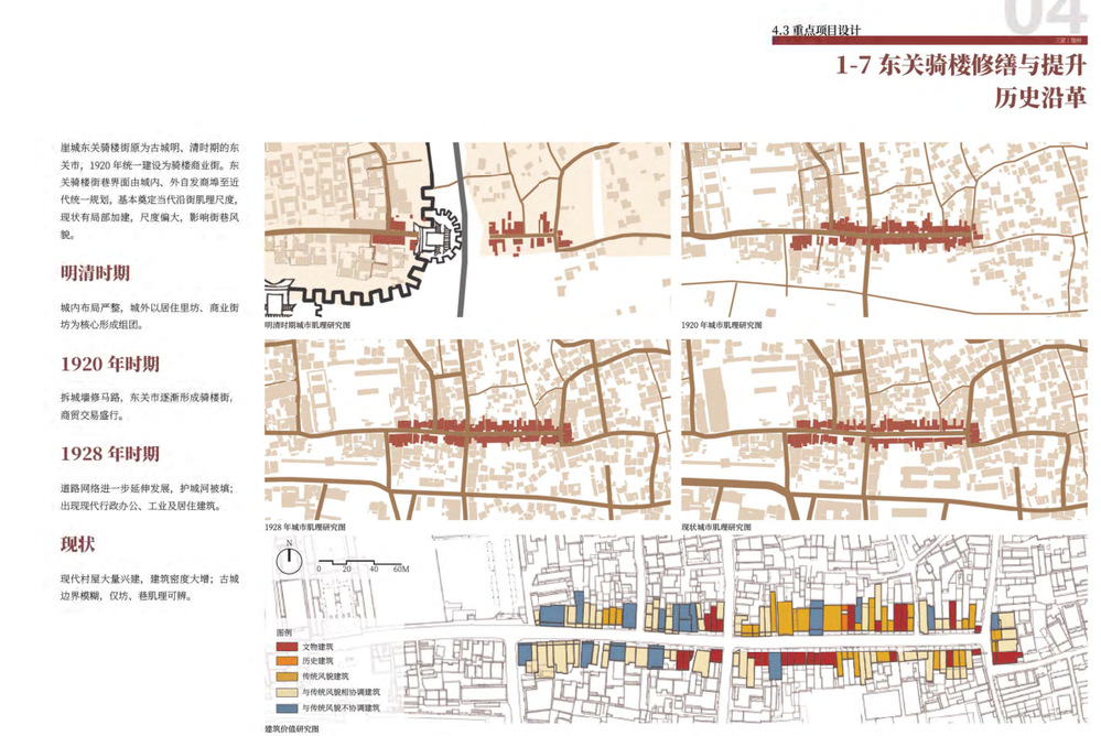 多维度专业分析体系:从区位、人群、建筑形制、材料构造到使用现状进行全维度拆解,通过实景调研图、平立剖施工图、空间分析图等可视化形式,精准定位建筑现存问题,为改造设计提供扎实的现实依据,体现了设计的科学性与严谨性。
