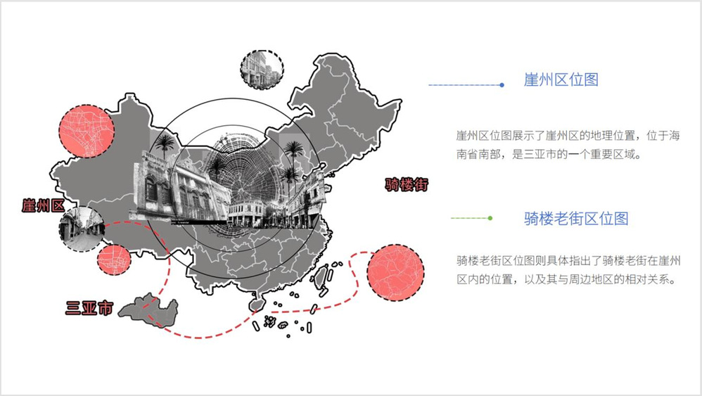 为让项目制教学的设计成果更具落地性,课程团队对接当地旅文局,获取了崖州古城的详细图纸与63户居民的基础信息。学生们的设计任务,直指骑楼街区外立面风貌杂乱、功能业态混杂的核心痛点,真正做到真题真做、学以致用。