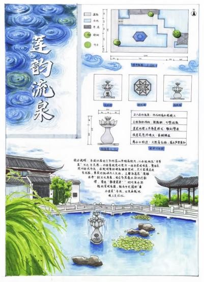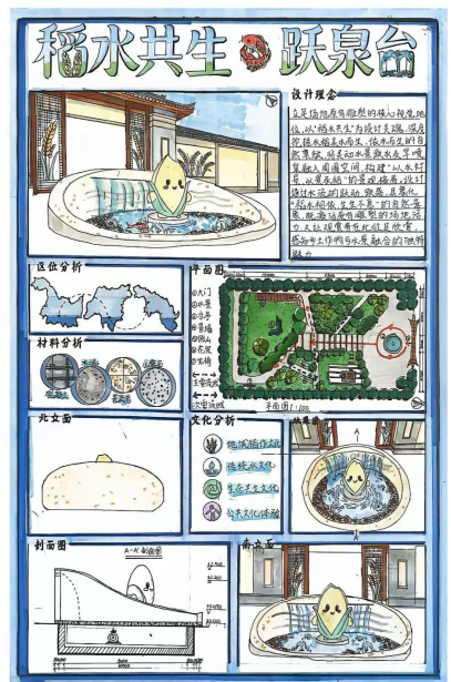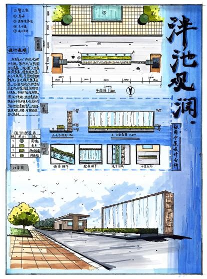 “园林小品设计这门课程,让我深刻体会到‘尺幅千里’的营造智慧。优秀的小品设计不仅是视觉焦点,更是空间节奏的调节者。老师一直传授我们设计不仅要有艺术性、功能性,更要以人为本,具有人文关怀。”她还详细介绍了自己的水景小品设计作品——“泮池观澜”,“希望在校园里打造一处兼具文化内涵与互动趣味的水景空间,让水流的灵动浸润校园的每一个角落,也让师生在与水的互动中,感受校园环境的温度。”