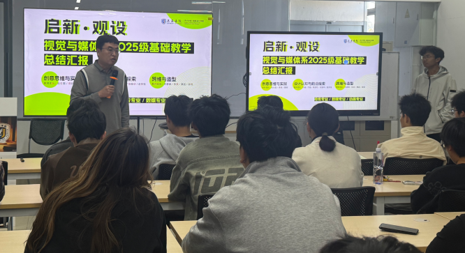 视觉与媒体系以2025级新生基础教学为切入点,围绕从造物到系统、从形式到认知的教学理念,对基础课程体系进行整体规划与协同推进,通过课程组联动,通过真实的场景化设置帮助学生建立对设计本质、媒介关系与社会语境的初步理解,为后续专业课程学习奠定坚实基础。