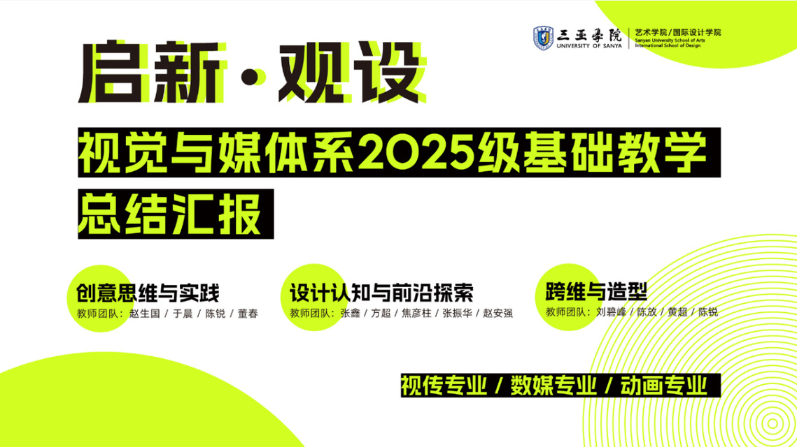 为全面总结2025级基础教学工作成效,展示新生在设计基础课程中的学习成果,进一步凝聚教学共识、推动教学质量提升,202618日,三亚学院国际设计学院视觉与媒体系以启新·观设为主题的2025级基础教学总结汇报活动在国际设计学院设计实验教学示范中心顺利举行。视觉与媒体系(视传专业、数媒专业、动画专业)全体专业教师及2025级新生共同参与本次活动。