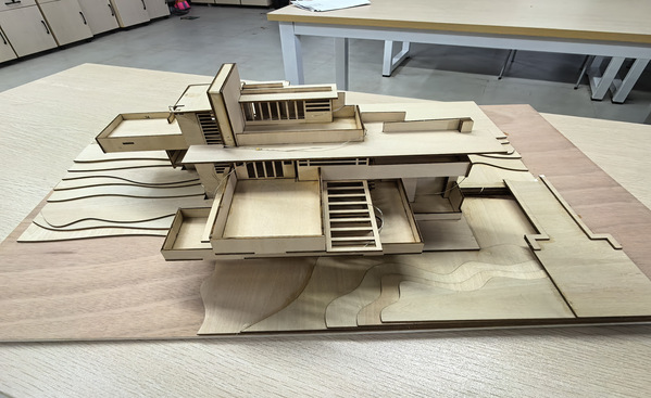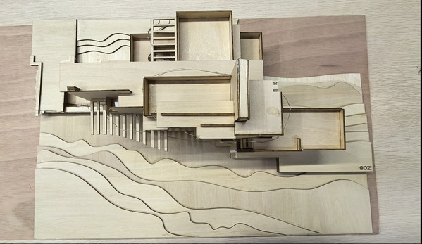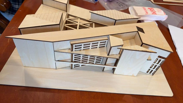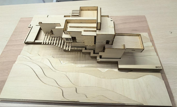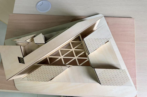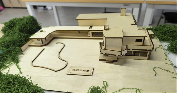 结课展示现场,一件件精致的建筑模型令人眼前一亮,95% 的同学能独立完成 1:100 比例完整建筑模型制作,所有作品均达到结构稳固、比例协调、逻辑清晰的专业标准。切割面平整光滑,拼接处牢固无缝,精准还原了建筑的空间形态与设计细节。在创新表达上,约 30% 的学生展现出突出潜力:有的创新曲面屋顶塑形工艺,让建筑线条更具流畅美感;有的采用亚克力板与木片的混合材质组合,增强了模型的视觉层次感与质感;还有的在空间布局中融入人性化设计思考,让模型不仅是建筑缩影,更传递出设计温度。