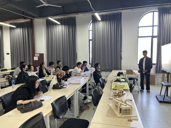 在教学过程中,以冉旭教授领衔、兰岚副教授、姜佳文、华雪莹、岳悦、裴禹贺等教师团队教师团队特别注重个性化指导与创新引导,开设八次 Office hour 专项指导,针对不同动手能力的学生制定差异化教学方案:为基础薄弱的学生提供额外技能辅导,设置材质替换等简单创新任务;为能力较强的学生布置高阶挑战,如自主设计小型建筑模型、对经典案例进行功能性改良。“老师会耐心解答我们在曲面屋顶塑形时遇到的难题,还鼓励我们尝试非传统材料,这种引导让我敢于大胆创新。”一位学生分享道。从工具生疏到技艺娴熟,从被动接受到主动探究,学生在沉浸式学习中不仅掌握了全流程技能,更形成了“整体把控+细节雕琢”的设计思维。