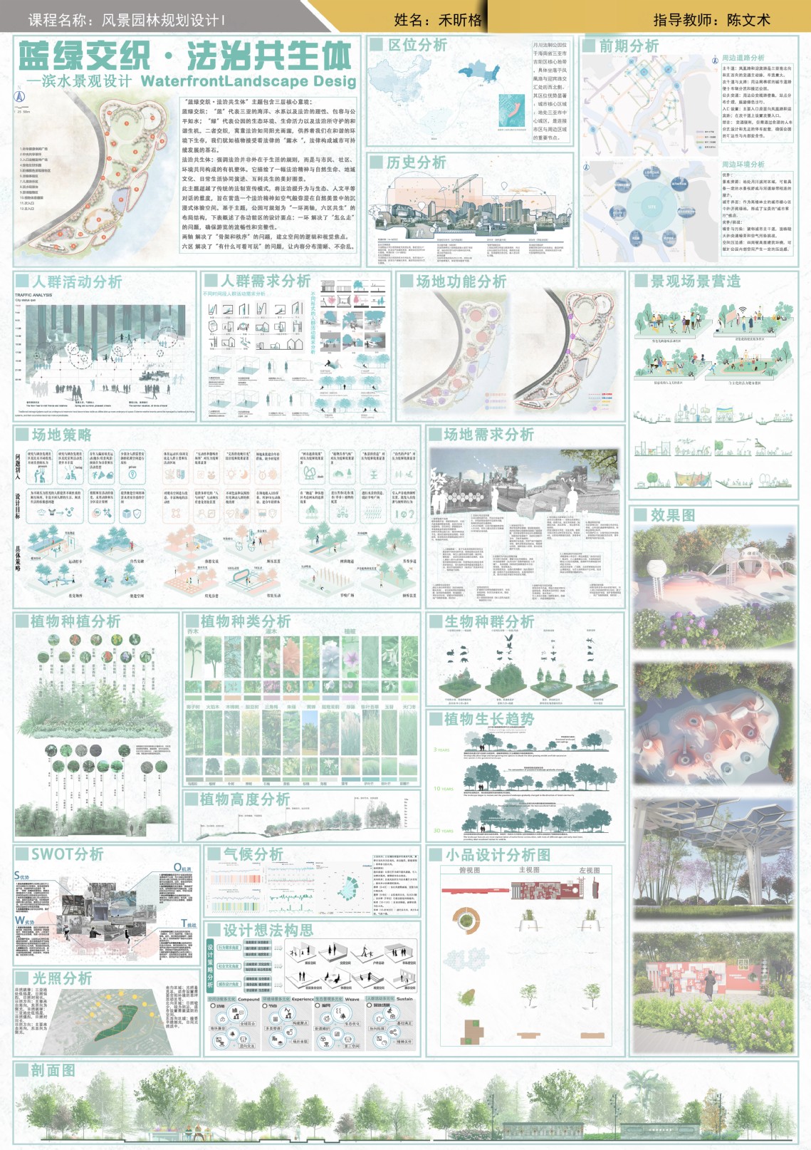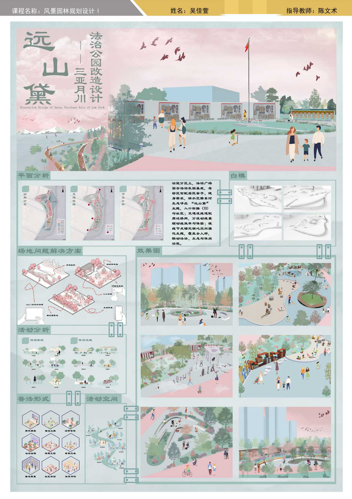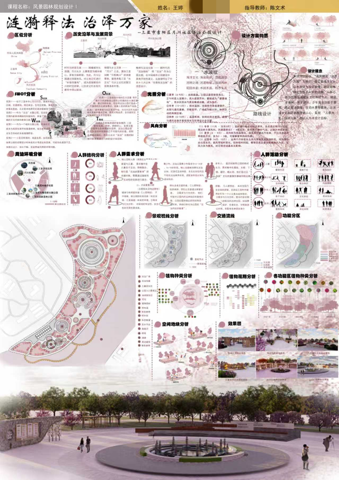 在新时代生态文明建设背景下,三亚学院风景园林专业核心课《风景园林规划设计Ⅰ》以“绿水青山就是金山银山”为育人主线,通过理论与实践深度融合的教学模式,培养学生服务城乡发展、投身生态建设的责任感与专业能力。