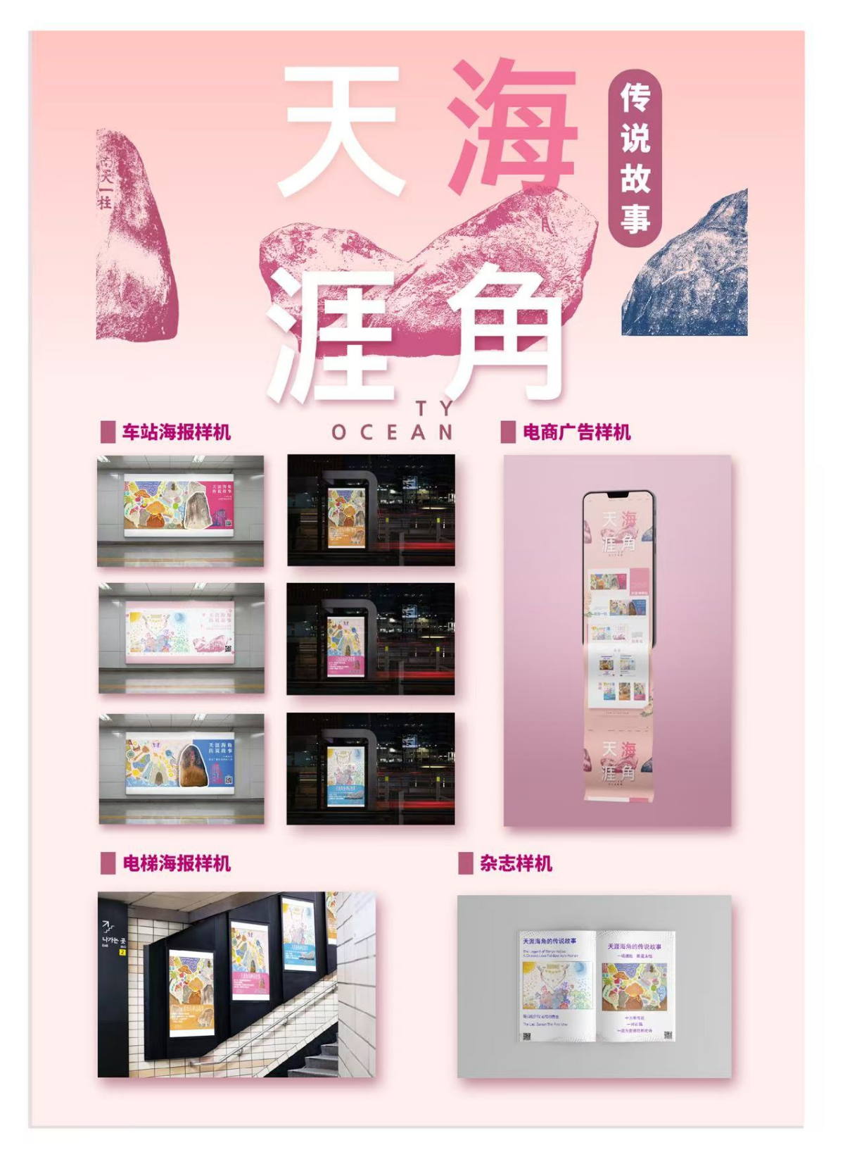 经过四周的深耕细作,同学们的创意最终落地为可应用的景区广告作品,涵盖墙体/公交站海报设计、电梯海报设计、电商详情页设计和杂志设计等多个媒介,用年轻化视角重塑景区形象,下面是学生作品分享: