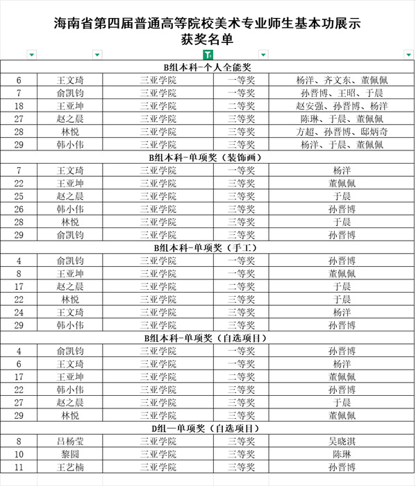 近日,海南省第四届普通高等学校音乐、美术专业师生基本功展示活动评选结果正式揭晓。三亚学院艺术设计学院选派师生代表组队参赛,凭借扎实的专业素养与积极的竞赛风貌,在激烈竞争中脱颖而出,荣获美术专业团体三等奖,学校同时获评优秀组织奖。