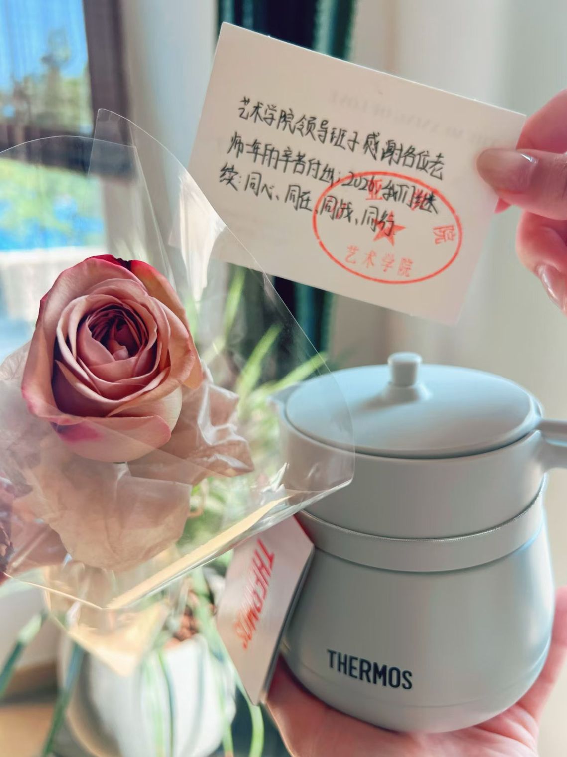 近日,艺术学院工会组织开展了慰问全体教师的暖心活动,向辛勤耕耘在教学一线的教职工们送上诚挚关怀与祝福。随附的贺卡上,“同心、同往、同战、同行”的寄语,传递着学院对全体教师一年来辛勤付出的肯定与感谢。