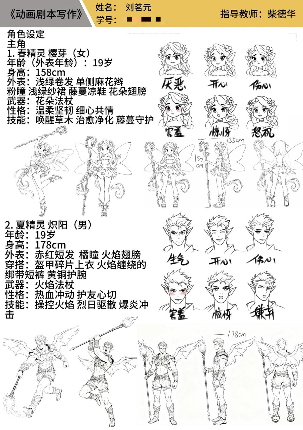 动画的灵魂藏于叙事,视觉的张力源于巧思。艺术学院《动画剧本写作》课程打破“纯文字创作”的传统边界,以“剧本为核心,视觉为延伸”的教学理念,将故事创作、人物造型设计、场景设计深度串联,引导学生完成从创意文字到视觉具象的全维度实践。在主题提炼与情节编排、人物塑造与形象勾勒、场景构建与氛围营造的每一次碰撞中,学子们逐步实现文学思维、设计思维与动画叙事语言的同频共振,让脑洞大开的文字创意,蜕变为有血有肉、有景可依的完整创作体系。