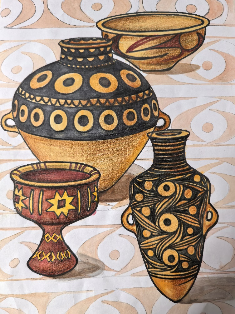 学生平时作业:通过对经典传统器物的细致描摹,将抽象的理论知识转化为可感知的具象认知,引导学生从器物的线条韵律、色彩意蕴、造型肌理等具体细节切入,深入体悟中国传统工艺的独特美学内核与深厚文化底蕴。