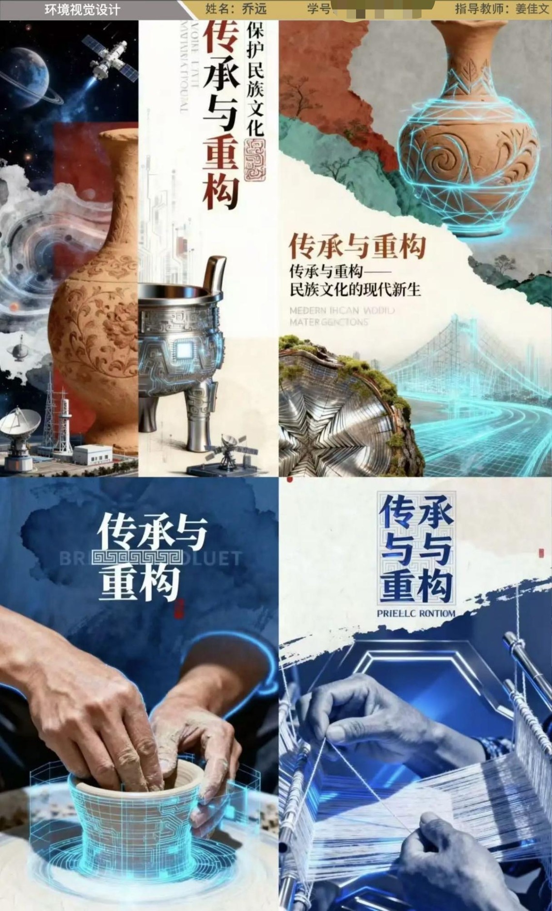 课程结束后,授课教师对学生的表现给予了高度评价。兰岚副教授表示:“本次课程中,学生们展现出了强烈的学习热情与创新潜力。特别是在AI工具应用方面,大家不仅熟练掌握了操作技巧,更能结合课程核心知识点与赛事要求,将技术、创意、功能与非遗文化美感有机融合,较好地达成了课程设定的知识应用与专业能力目标。其中张珏、郭亦菲等同学,凭借以‘匠造新生高校非遗创新设计大赛’为训练目标的IP作品斩获佳绩,充分展现了课程教学的实践价值。学生作品中对校园文化、非遗元素的挖掘、对环境保护、人文关怀的体现,也彰显了思政素养与职业素养的提升。”姜佳文老师补充道:“课程通过真实项目驱动、赛事导向训练,让学生提前接触了设计行业的工作流程与赛事规范,培养了他们的项目策划、协调执行能力。从作业完成情况和赛事获奖成果来看,学生们的设计思维、实践能力都有了显著提升,达到了预期的教学效果。”