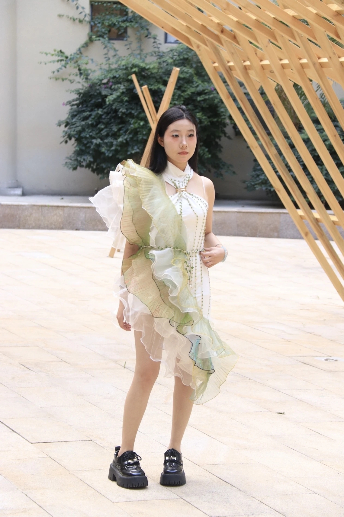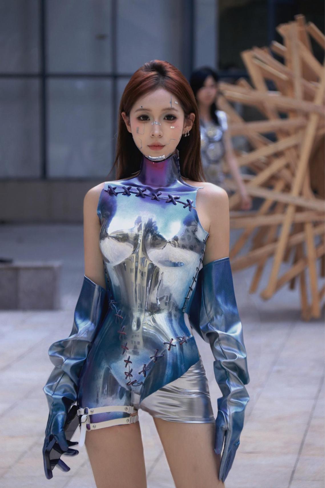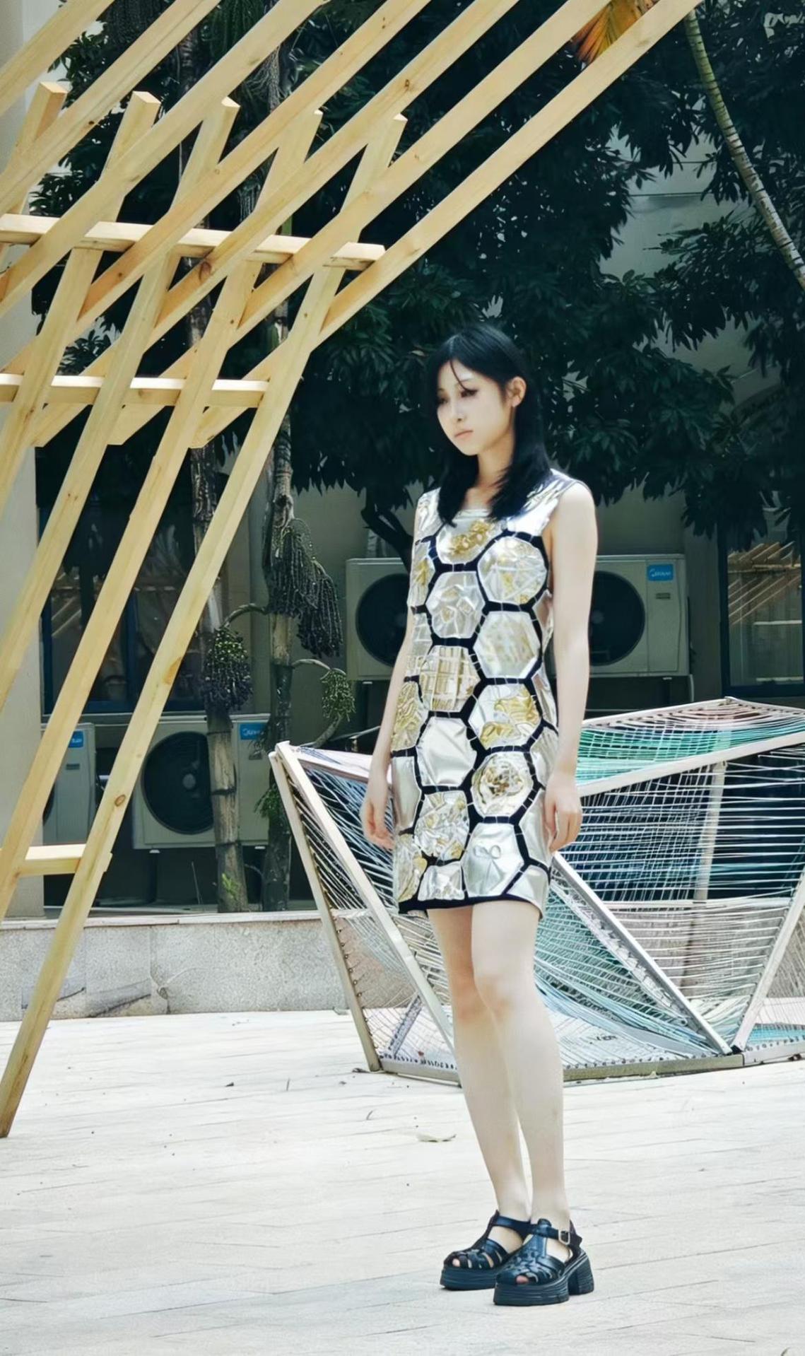 在项目推进中,学生不仅锤炼了设计表达与工艺实现能力,更在真实问题解决中提升了综合素养。从最初的概念板构建,到立体裁剪中的结构尝试,再到成衣阶段的细节打磨,每一件作品都凝聚着反复试错、不断优化的坚持。激光切割、面料印染、编织工艺、金属与织物融合等技法被广泛应用,展现出年轻设计师对材料与形式的敏锐感知。