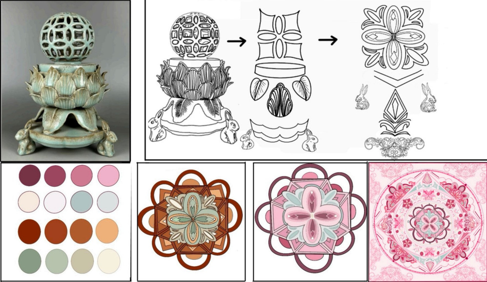 同时,聚焦抽象设计场景,通过点线面重构、色彩要素重组等训练,引导学生探索抽象思维的视觉表达,学会从自然与人文元素中提炼抽象符号,实现从具象到抽象的设计跨越。多样化的教学内容与方法,让学生能够灵活应对文创设计、界面设计、产品外观设计等不同领域的需求,显著提升了设计应用的适配性与灵活性。