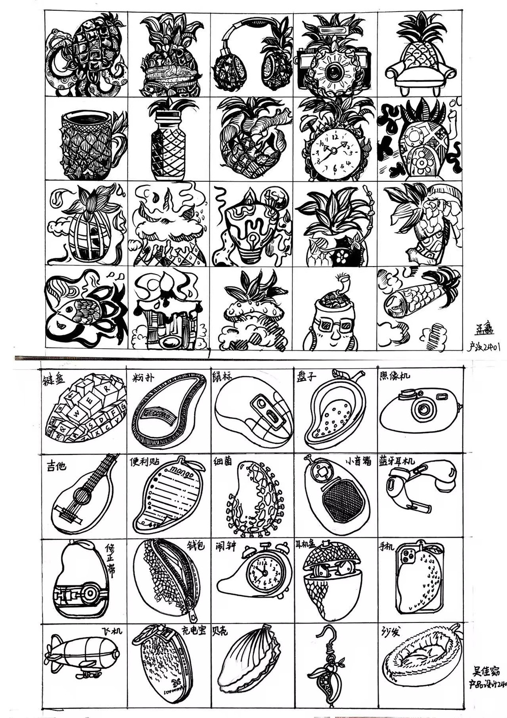 金晓蕊老师从基础视觉观察入手,通过海南水果联想、基础几何形态过渡等趣味练习,激活学生的联想与想象潜能;进而深入讲解图形变形、结构分析的核心方法,引导学生从自然植物、动物昆虫等题材中提取视觉元素,完成从具象形态到设计语言的精准转化。在教学过程中,注重逻辑思维与创新思维的双重培养,通过层层递进的训练,让学生不仅掌握“怎么做”,更理解“为什么这么做”,逐步形成兼具逻辑性与创造性的设计思维模式,为后续复杂创意设计奠定坚实基础。