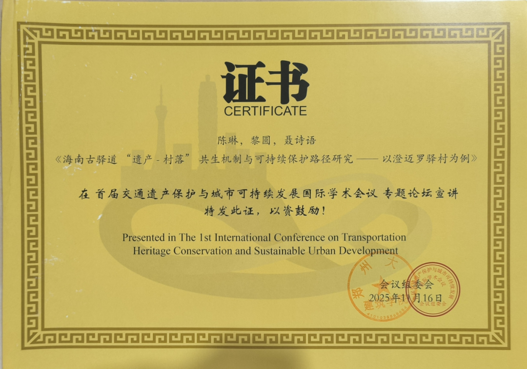 赛事落幕之后,我以此次海南古驿道调研为核心,撰写了一篇古驿道相关的论文,系统梳理调研成果、提炼核心观点,进一步深化了对古驿道文化保护与传承的思考。经过层层筛选和陈琳老师的悉心指导,该论文成功入选郑州大学国际学术会议交流篇目,我有幸前往郑州大学参与此次国际学术会议,在会议中与来自各地的学术同仁交流探讨,聆听行业前沿观点,既拓宽了学术视野,也对自身论文的完善有了更清晰的方向。