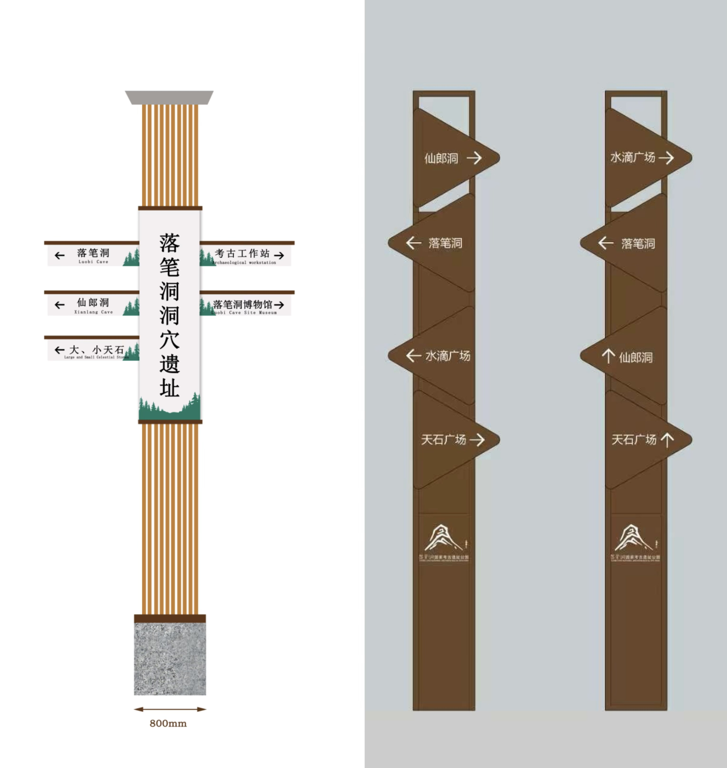 项目推进过程中,团队成员分工协作、各司其职,凝聚起强大的工作合力,高效推进各项设计与落地工作。其中,我主要负责项目中的抽拉装置、警示牌及导视系统的设计与落地相关工作,从前期的方案构思、细节打磨,到后期的落地适配、优化调整,每一个环节我都认真严谨、精益求精,努力将专业所学运用到实际项目中,确保负责模块贴合项目整体定位、满足实际使用需求。在导视系统设计方面,我围绕落笔洞的古遗址文化特色、游客游览需求及整体环境调性展开,初稿设计阶段,参考同类古遗址导视设计案例,初步确定了导视系统的整体风格——以简约大气为主,融入落笔洞遗址的文化元素,兼顾实用性与观赏性。经过多轮打磨、不断修改完善,最终确定导视系统定稿,既满足了游客的实际游览需求,又与落笔洞的整体环境、文化氛围高度契合,实现了“导视即风景、实用即美学”的设计目标。