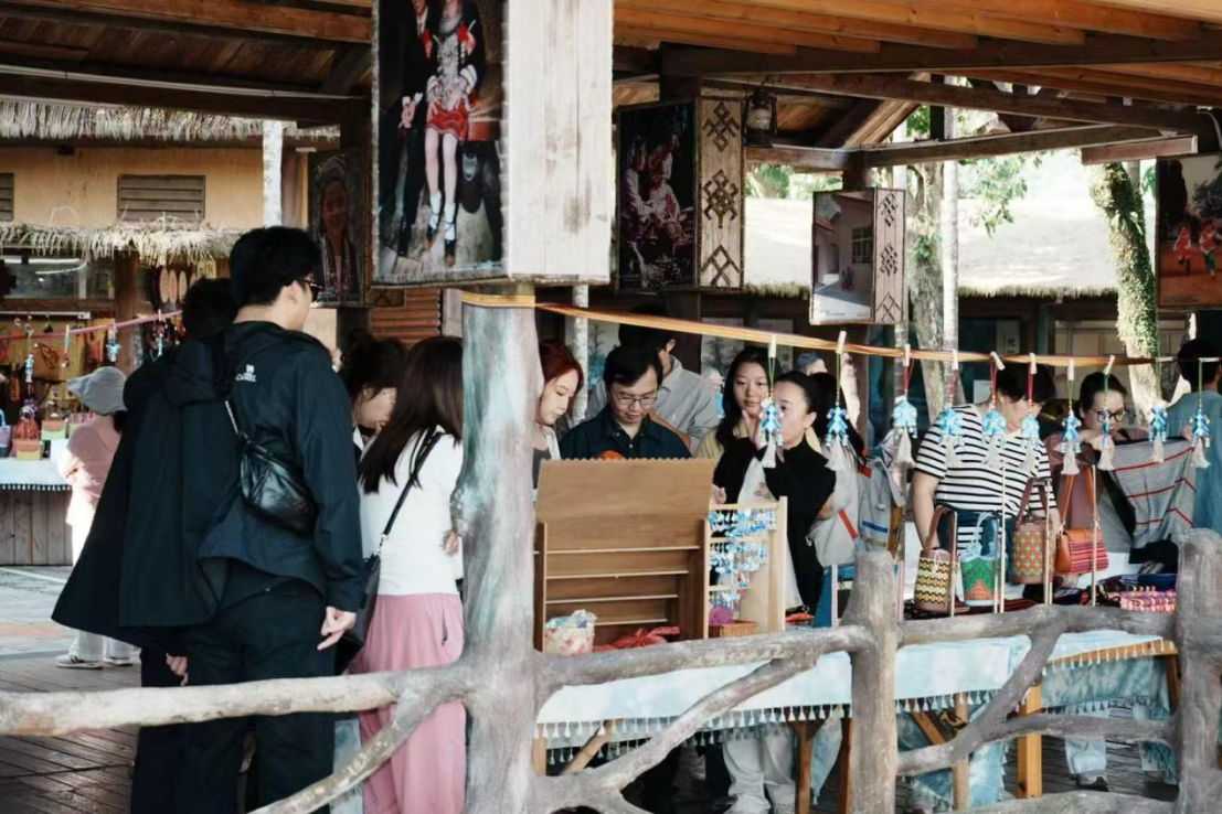 除了聚焦历史驿道研究,我还积极参与多元文化调研与实践项目,在不同场景中拓宽专业边界、积累实战经验。12月29日,我跟随研究生设计团队在孙晋博老师的带领下,前往海南槟榔谷开展黎族文化专题调研学习。在讲解员的耐心指引与细致讲解下,我沉浸式感受黎族文化的深厚底蕴,尤其对黎族纺染织绣这一非物质文化遗产,形成了更为系统、深刻的认知。从纺线、染色到织布、刺绣的完整技艺流程,既承载着黎族先民的生活智慧与审美追求,也为我后续的设计创作注入了鲜活的文化灵感,更让我深刻意识到传统文化与现代设计融合的独特价值与广阔空间。