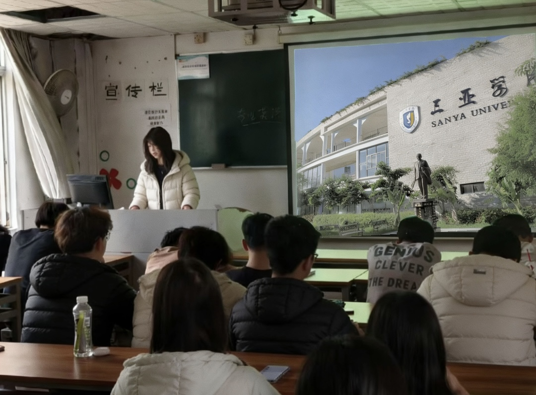 在老师的引领下,我走进集训班级教室。看着台下学弟学妹们眼中对艺考的憧憬与对大学的好奇,仿佛看到了曾经为梦想奋力拼搏的自己。宣讲伊始,我以自身经历为切入点,分享了三亚学院丰富多彩的大学生活——趣味十足的社团活动、设备完善的动画实训教室、自由多元的艺术学习氛围,让同学们对高校艺术生活充满向往。