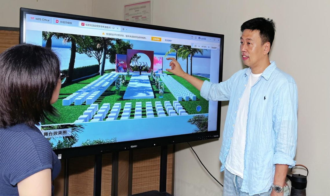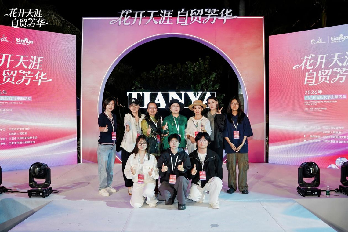三尺讲台育桃李,一方天地绽芳华。学院女教师们以巾帼不让须眉的担当与风采,深耕艺术教育沃土,既是课堂上传道授业的引路人,也是实践中躬身探索的先行者。此次三八节,学院将项目制活动融入节日开展,助力天涯区“花开天涯 自贸芳华” 三八主题活动,成为学院项目制教学的又一成功实践,更进一步增强了全院师生 “用艺术服务地方” 的使命感。活动中,在张鑫书记的组织下,学院服装设计专业多位女骨干教师带领学生,全面深入参与到活动创意策划、宣传推广与传播策略制定、视觉设计方案构思与实现,以及场景布置落地执行、走秀流程详细规划和现场实际操作等各个环节。师生团队全程密切跟进每一个步骤,在现场反复调整优化,全力推动创意与设计完整、高效、高质量转化为现场呈现效果,以专业实力展现了艺术学院女教师的过硬素养与巾帼力量,也让学生在实战中实现了课堂知识到实践能力的转化。