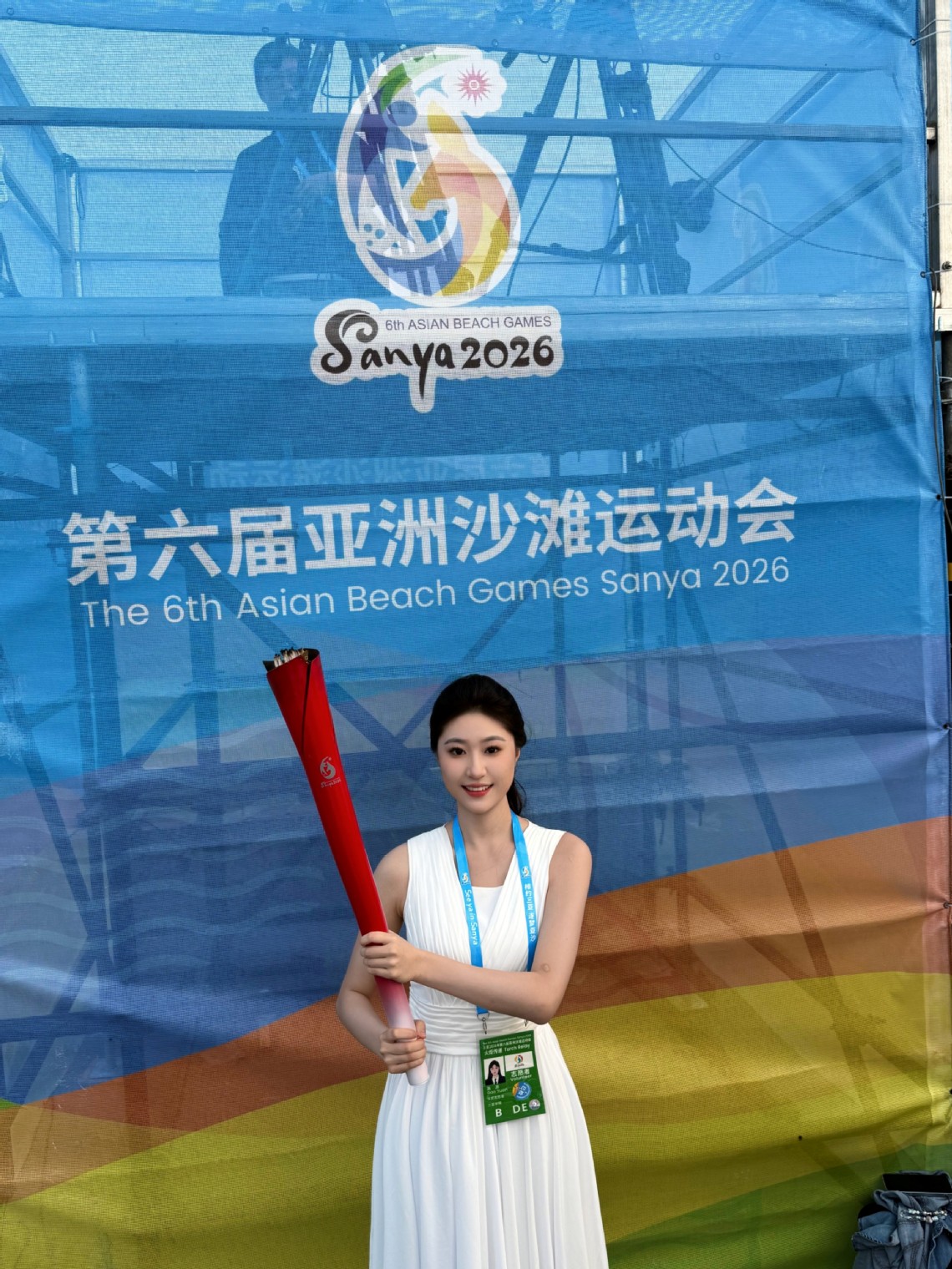 从重庆奔赴三亚求学,贾双瑞始终在设计专业的学习中用眼睛发现美、用创意传递美。此次成为采火使者,让她亲身参与到亚洲盛会之中,更深刻体会到体育精神、地域文化与青春风采交融的独特美感。在她看来,圣火象征着希望与团结,海岛风情承载着开放与热情,这些都将成为未来设计创作中最珍贵的灵感源泉。