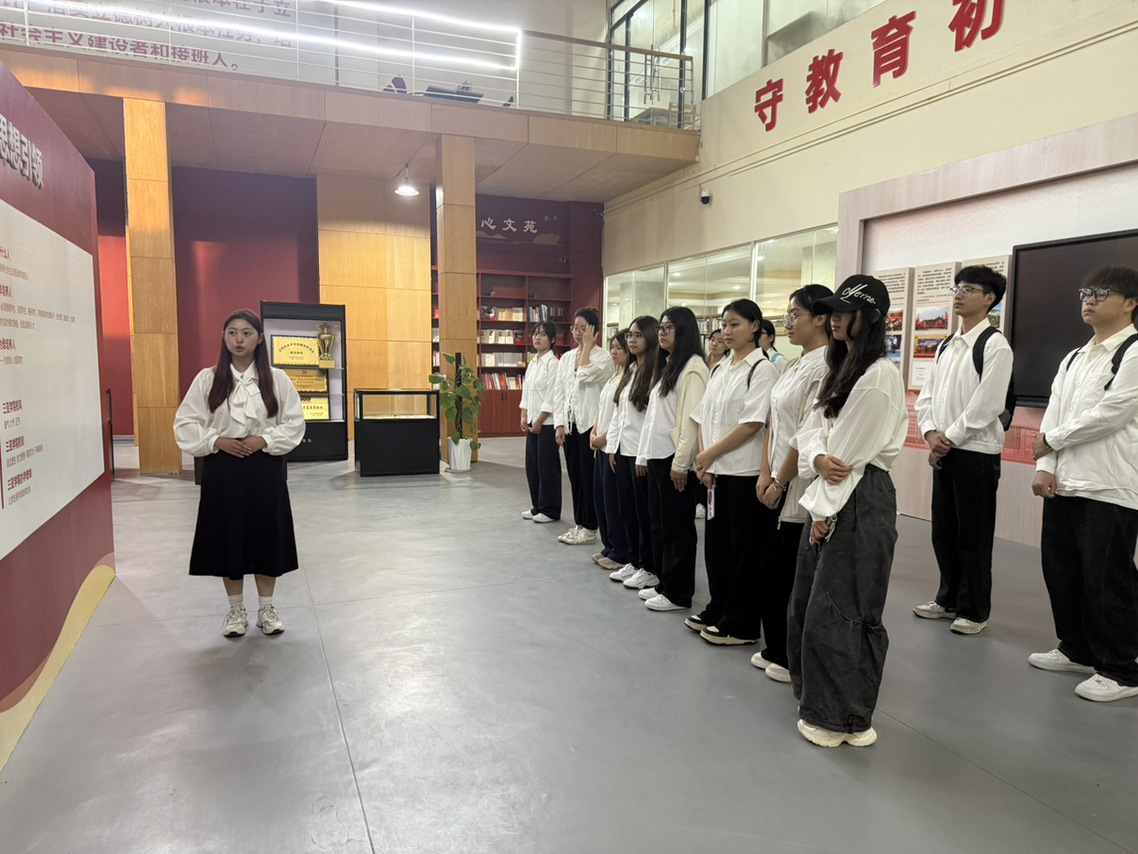 展厅上方“办好人民满意的教育”的醒目标语,让同学们深刻领会到新时代教育工作者的使命担当。