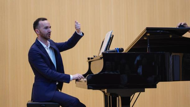 在意大利音乐家大师分享与指导环节,Davide Perniceni先生结合自身数十年歌剧指挥、声乐指导、舞台制作经验,围绕歌剧制作、声乐艺术、指挥技法、钢琴演奏等核心内容展开深度分享,并结合经典歌剧作品进行专业示范与现场指导。从演唱气息到舞台表现,从作品理解到情感传递,大师细致点拨,师生受益匪浅。