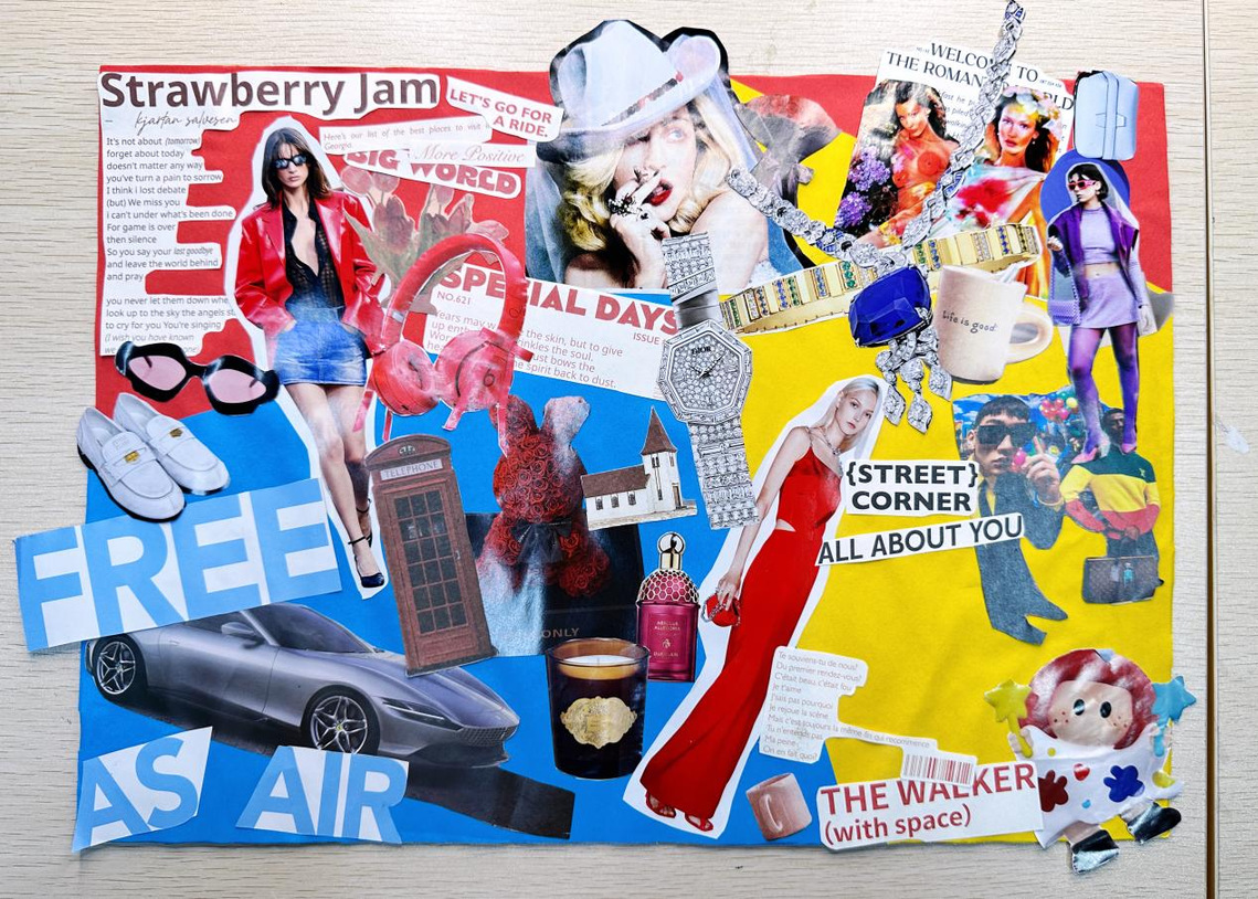不会搭配?直接给你现成公式,闭眼套用不翻车!基础款:同色系搭配,高级协调不踩雷,适配日常穿搭等所有简约场景;对比色搭配,醒目有冲击力,适合需要吸睛的创意设计,记住“不超过2种对比色”,避免杂乱即可!进阶款:色调统一+辅助色搭配,低饱和显高级、高饱和显活泼,主色调+辅助色的搭配技巧,轻松提升设计层次感,不管是穿搭还是创意海报,都能拿捏质感✨。课堂上直接用时尚杂志拼贴完成搭配方案,小组互评+老师指导,搭配误区当场纠正,练完就能直接应用到专业场景中!