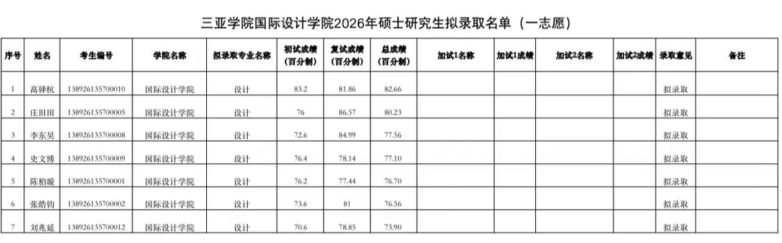三亚学院国际设计学院2026年硕士研究生拟录...